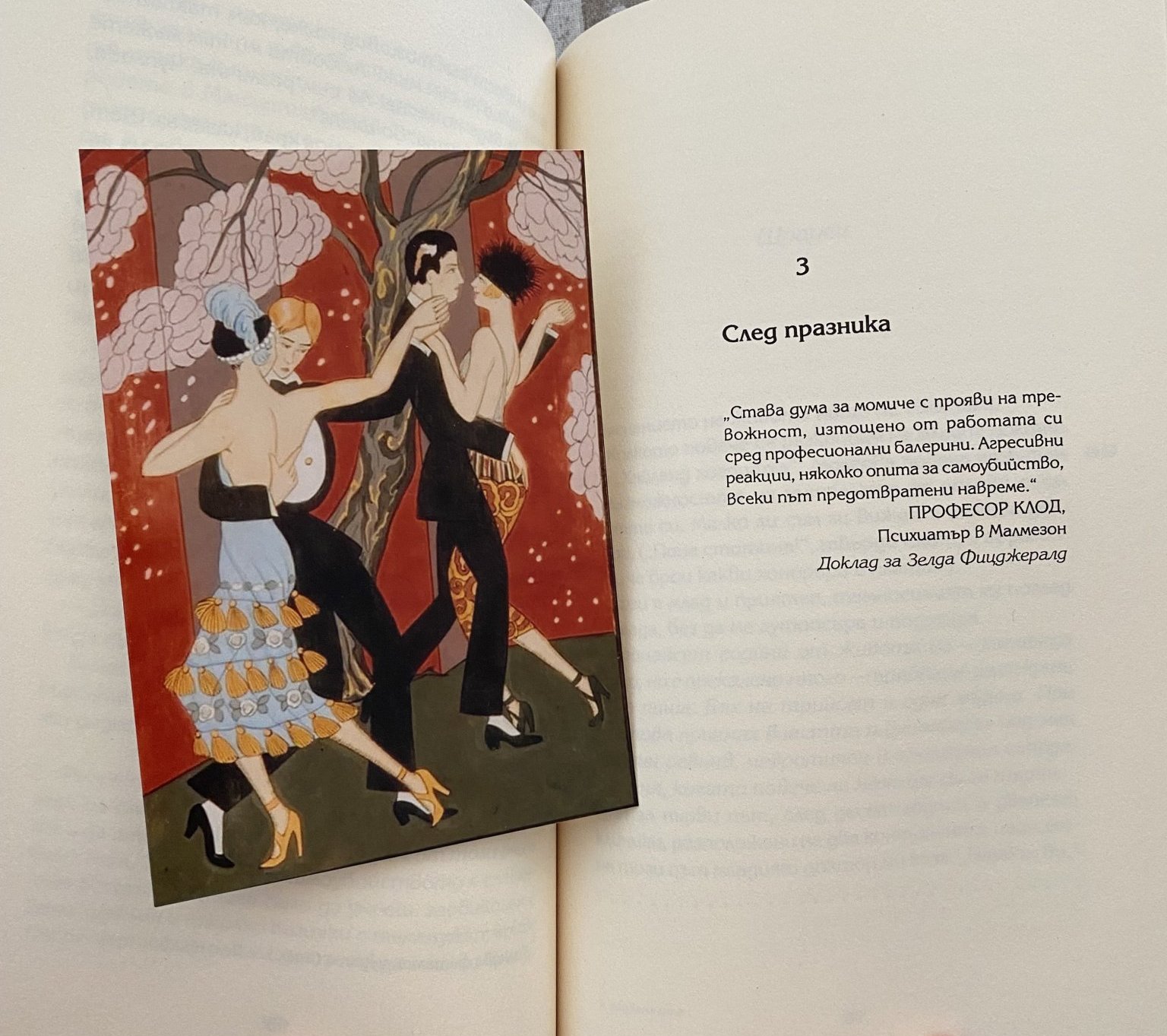 На моменти ми се струваше прекалено, но други пък ме впечатляваха с прозорливост. Бракът/животът със Скот Фицджералд е представен като ужасяваща нежност. Една съвместна лудост, а не любов. Нелюбов и дори ненавист.