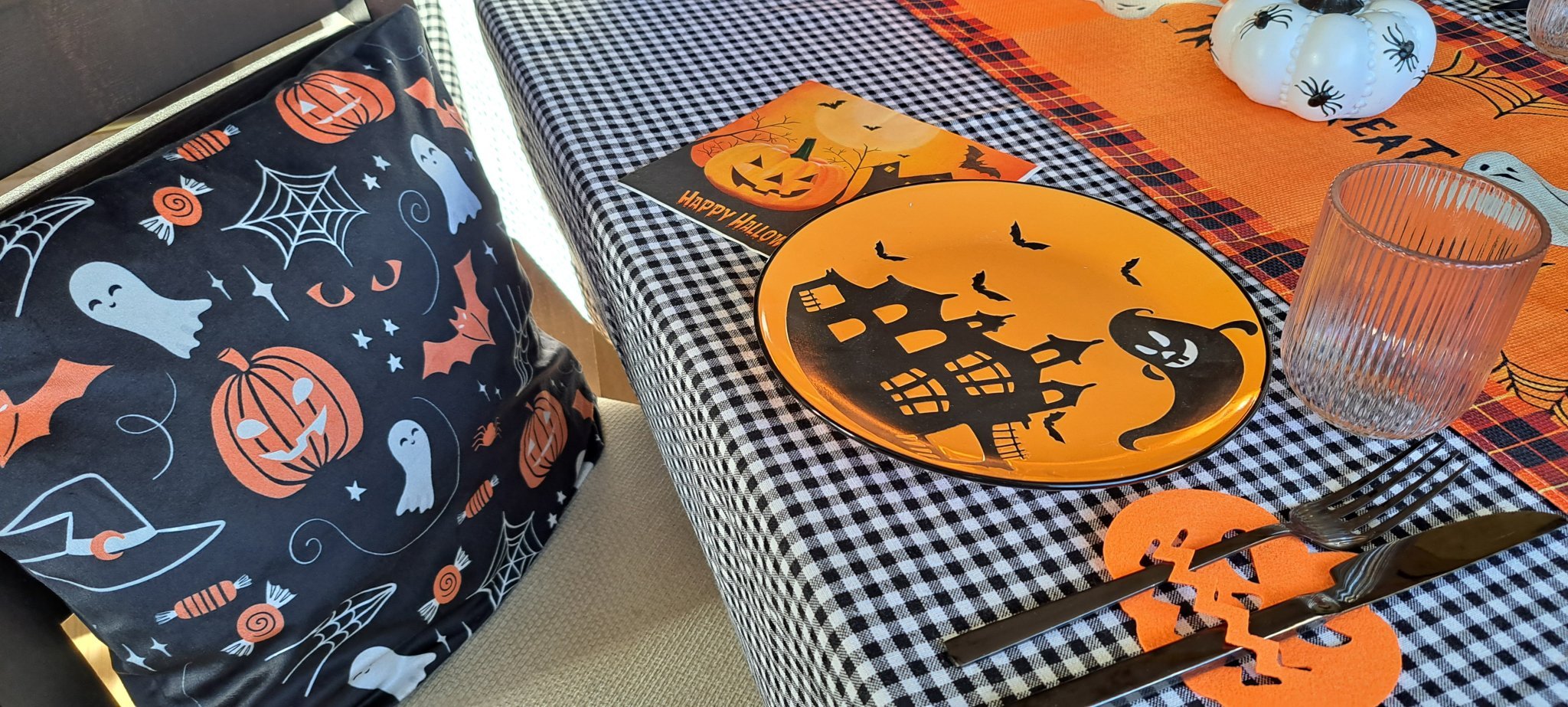 Темата наблюдава преобладаваща употреба на топли есенни цветове, както и акцентни елементи с контрастни цветове за подчертаване на основната декорация. Често се използват различни текстилни покрития и предмети, свързани със сезона, като например тикви и есенни цветя, които придават уют на обстановката.