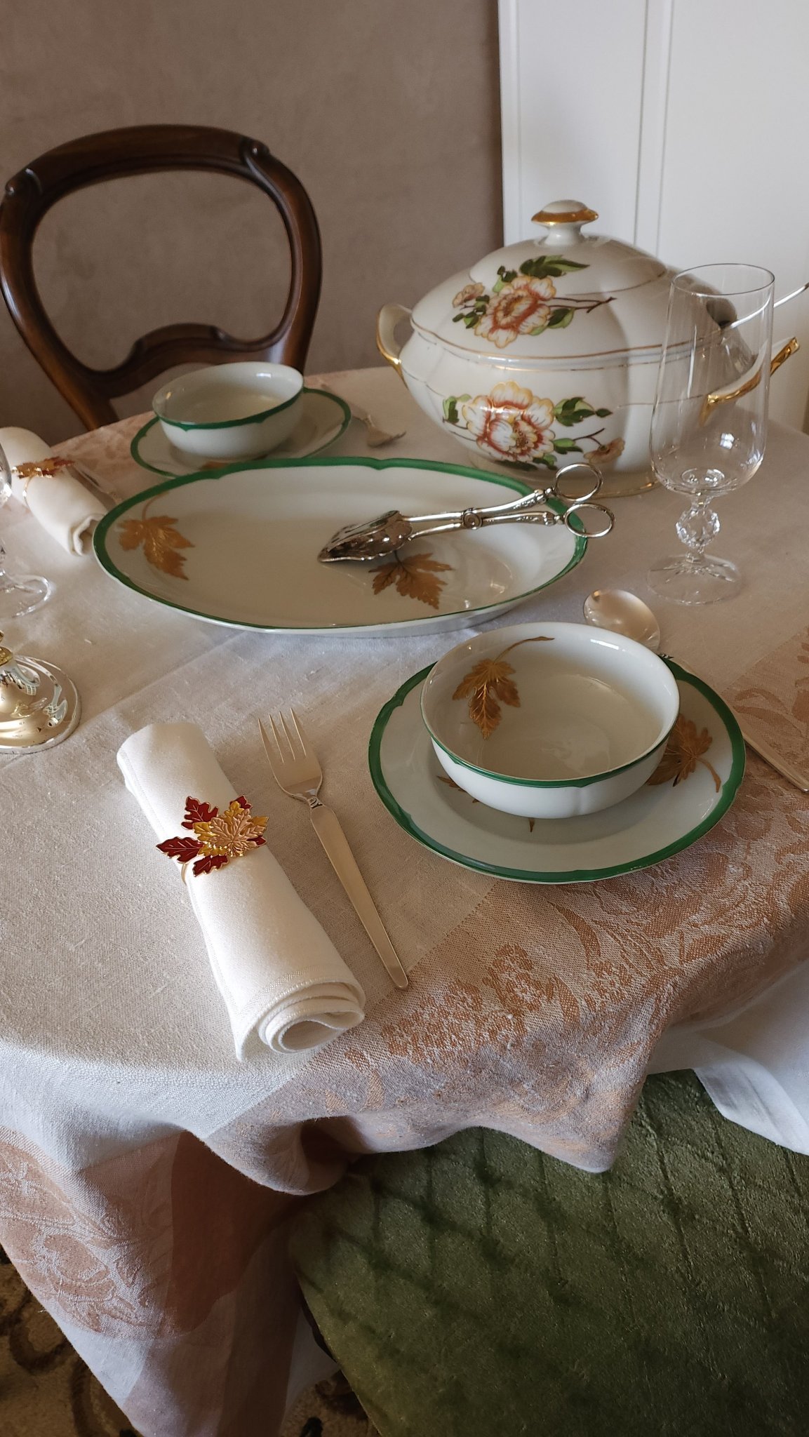 Аз също се възползвах от все още есенния сезон и сложих направо забравени чинии, сигурно щях да се сетя следващата есен, а хем точно за тях поръчах пръстените преди време. Особеното в чиниите и супника е, че са много, много старо българско производство.