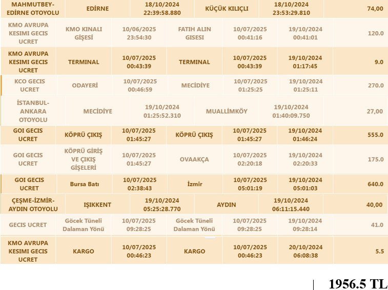 Мда, Иван Момиров се оказа прав. Изключително трудно е да се изчисли точно таксите при маршрут в Турция. Ето точната разбивка от HGS системата за пътя до Фетие само по магистрала