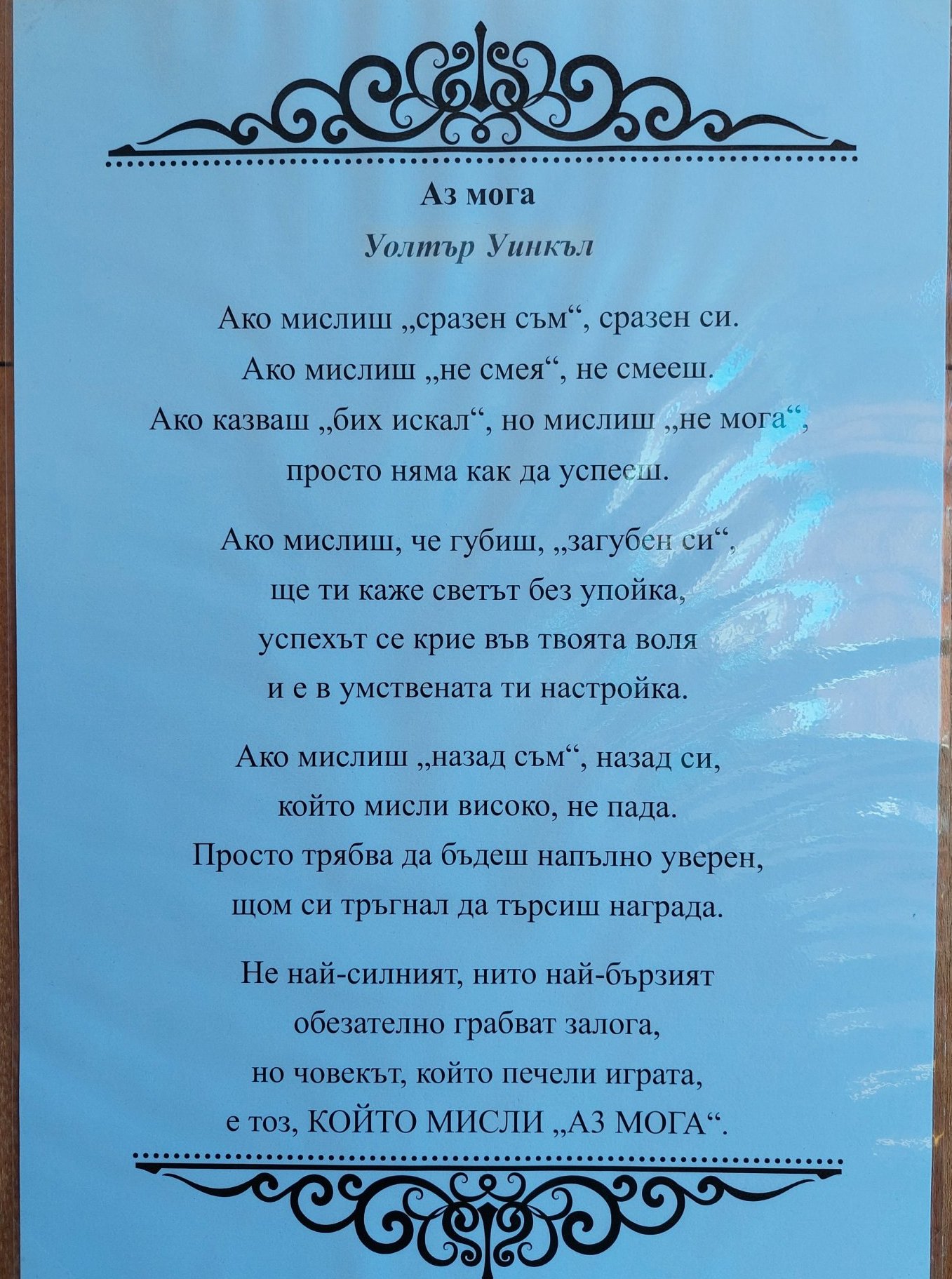 Вела, благодаря и на теб! Всяка твоя дума е една голяма причина да пропъдим всяка лоша мисъл от съзнанието си. Положителното мислене и нагласа е много важна в трудни моменти.