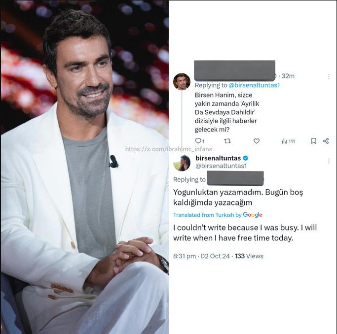 ✨Актуализации | Журналистката Бирсен Алтунташ отговори на фен, като каза, че ще публикува новини за сериала на Netflix на Ибрахим Челиккол „Ayrılık da Sevdaya Included“ днес.