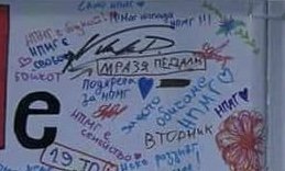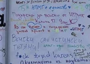 Bibibon, този плакат е на "средната" ограда на училището... абсолютно всеки може да пише там, включително "снимачите" от онзи ден, които се вряха в децата...