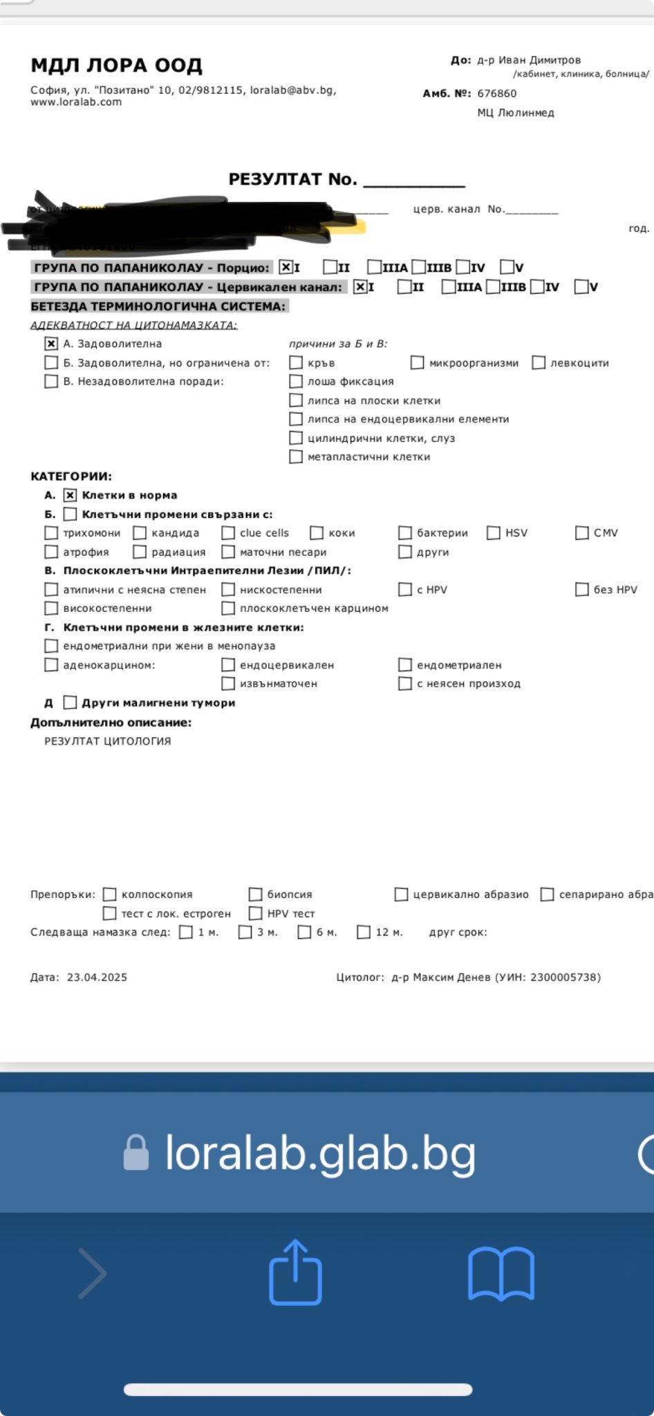 Май месец си открих кондилом, от горната страна и само един. Отидох на преглед, гинеколожката каза, че това е просто брадавица, да отида на кожен и да ми я премахнат. Цитонамазката беше 2 група. Отивам на кожен - не било кондилом, нямаха азот, изписа ми един разтвор, с който да го мажа, за да падне само. Така и не успях да го махна напълно с него.