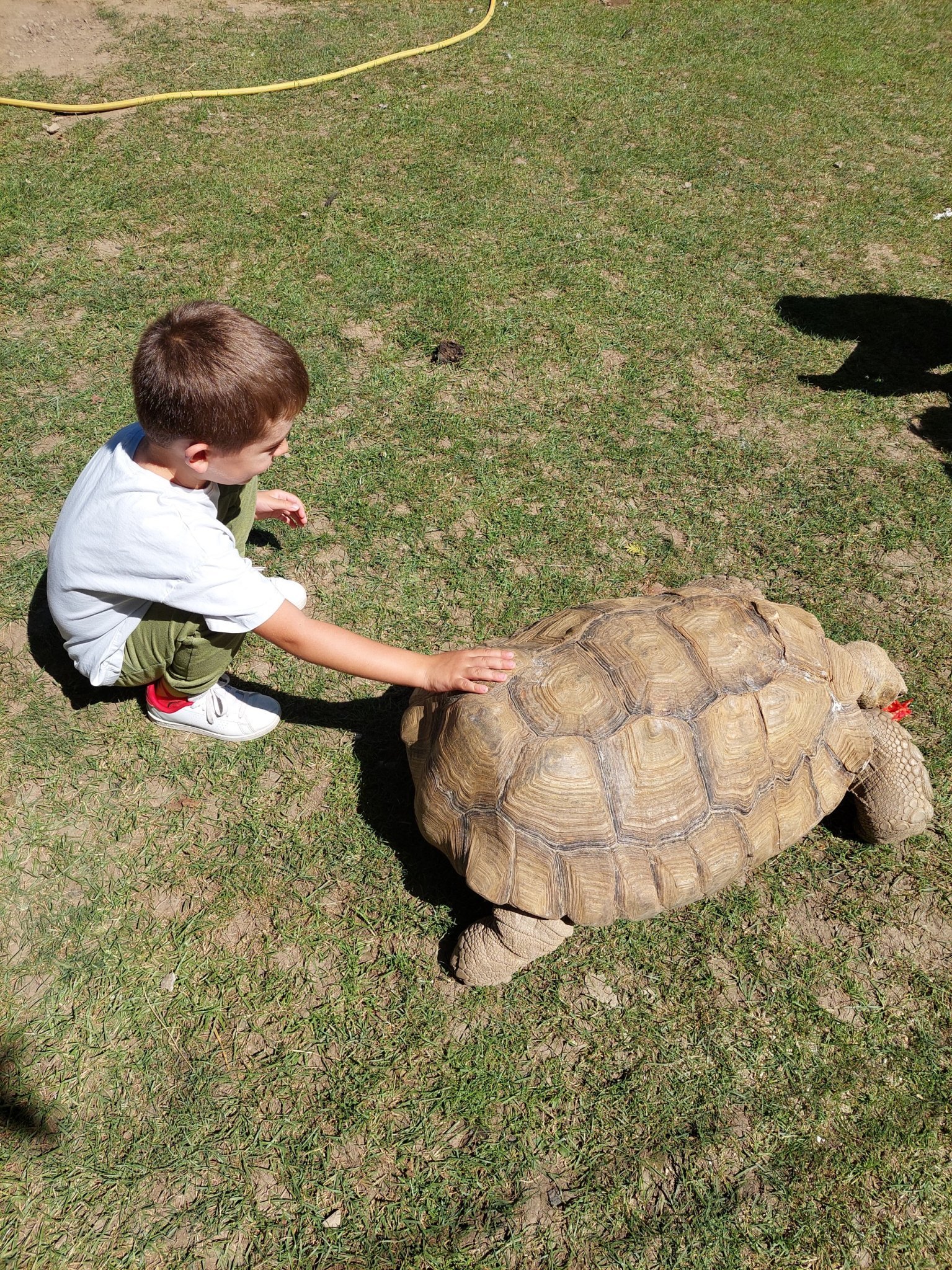 Здравейте, дами! Нямах много време тези дни, а службата, а домакинство и седмицата мина. В петък ми доведоха пИятеля, но стоя само два часа, защото същия ден му купили хамстер и реши, че Бляки плаче за него. Мен ако питате, плаче от него, ама...Вчера беше истински летен ден и като го докараха отново, тръгнахме към Лесковец. Там има частен зоопарк и много от птиците и животните се разхождат свободно между хората. Беше страшна навалица, но си изкарахме чудесно. Най-много му харесаха големите африкански костенурки, а сега имам задача да събирам пари за такъв костенур, не костенурка, а точно костенур.