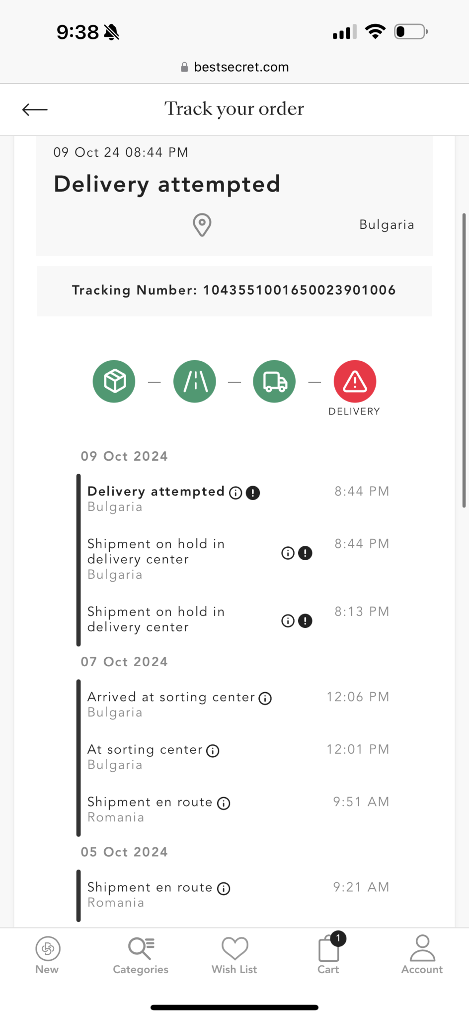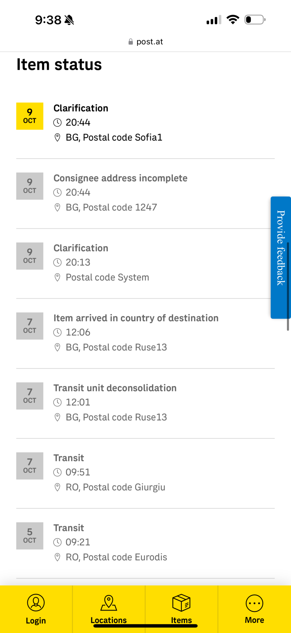 При мен е по същия начин само че идва до Бг в софия и я пращат в румъния защо ?