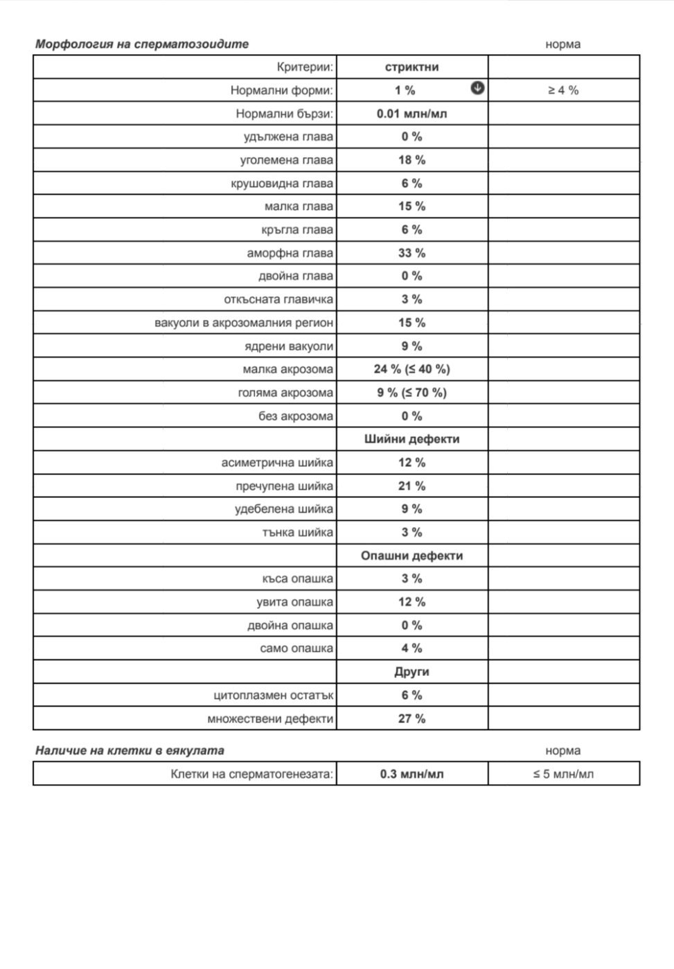 Морфологията на сперматозоидите се оценява по критериите на Крюгер и ниските проценти, като например 2-3%, могат да увеличат риска от проблеми с фертилитета. Ниската подвижност, като астензоспермия, също е проблематична, тъй като затруднява движението на сперматозоидите към яйцеклетката. Когато се комбинират ниска морфология и подвижност, шансовете за естествено оплождане са значително намалени. В такива случаи често се препоръчва инвитро оплождане с техники като ICSI, които минимизират рисковете, свързани с репродуктивните проблеми.