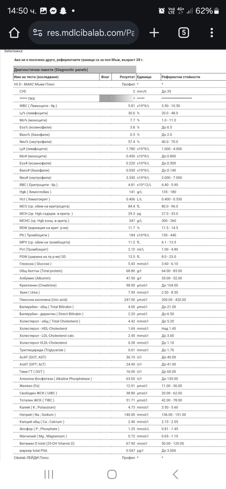 Здравейте, това е спермограмата на моя мъж, направена днес в Ню Лайф в Бургас. Може ли мнение? Правим опити от 7-8 месеца и засега неуспешно. Той е на 29г с наднормено тегло и диабет. Последно вит. Д му беше 12,60 ng/mL при долна граница 20.60, тестостерон 9,28 nmol/L (8,64-29.00), DHEA-S 8,78 umol/L (4,34-12.20). Запази си час за уролог за другата седмица. С какви въпроси може да се подготви и да продължаваме ли с опитите? Също доколко са достоверни резултатите от тази клиника? Трябва ли да се повтори в друга? Благодаря предварително!