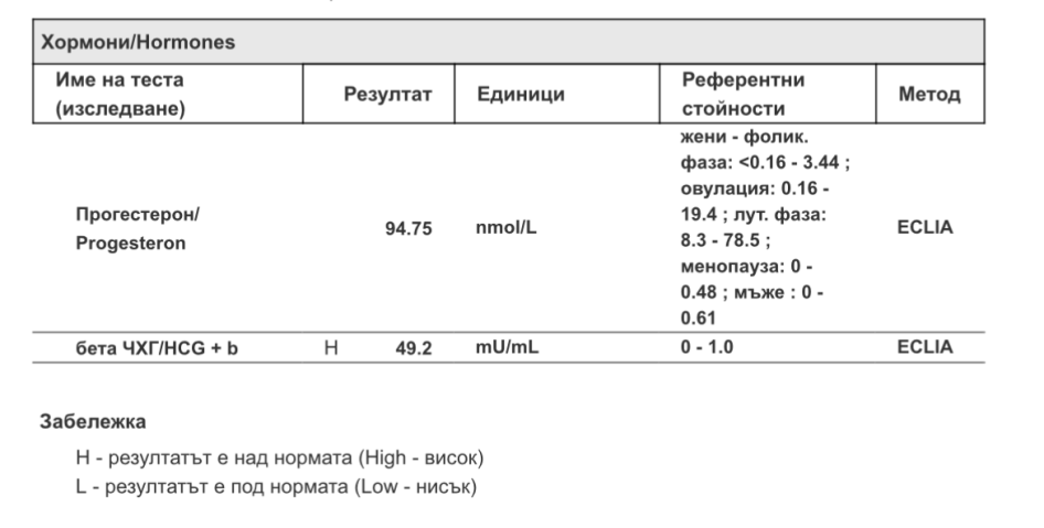 ЧХГ се увеличило петорно, прогестерона също се е увеличил без да приемам медикаменти. Като цяло съм доволна, мисля че е ОК.