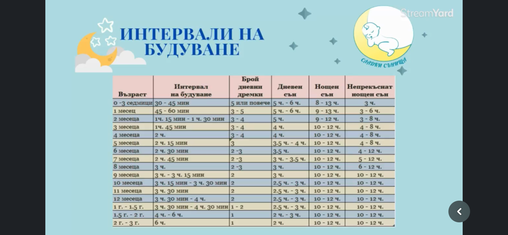 Храненията са обикновено 6, някои дни дори 7, ако се събуди повече през нощта. Аз се водя от тази таблица за сън и се старая малкият да не спи повече от 4 часа, рядко 4 часа и половина през деня. Първа дрямка преди обяд около 40-45 минути, втората обяд-следобяд около час и половина, два, понякога може и 2 и половина и третата и след това отново по-къса, но последните дни нещо си я скъсява съвсем. Обаче на нас нощният сън ни е проблем или по-скоро заспиването за него и като чета коментарите се чудя дали не го преуморявам.. Имаше буквално няколко нощи, в които не се е будил до сутринта иначе най редовно си става по два пъти да яде и второто му заспиване понякога също създава проблеми. А и ние не можем да се приспим често до 21-22 часа, а доколкото знам по-рано трябва да заспиват за нощен сън. Някои вечер обаче се лъжем да заспим по два часа.