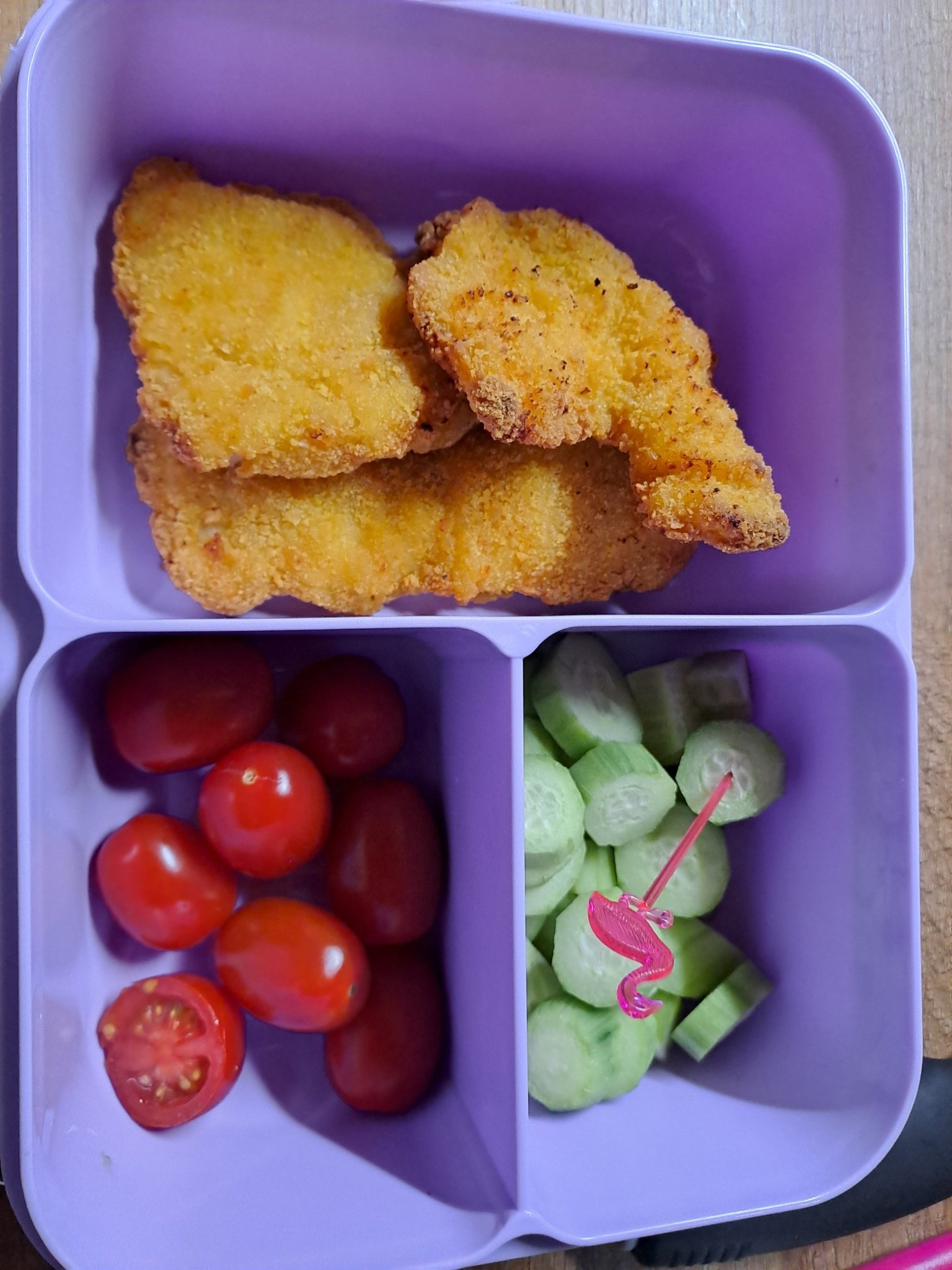 За обяд малчугана ще е на пилешки хапки и морковена салата.