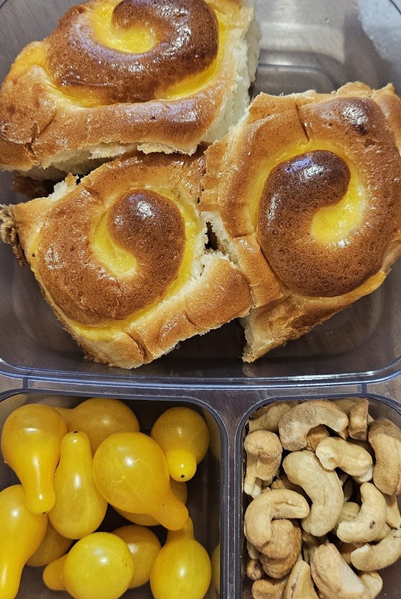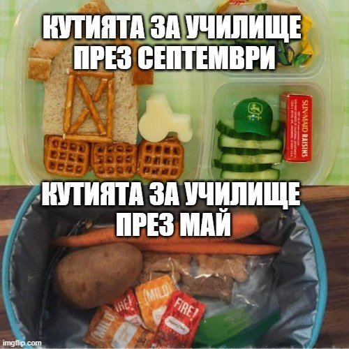 Кака му (10ти клас) принципно не носи храна от вкъщи, но си взе от бисквитите.