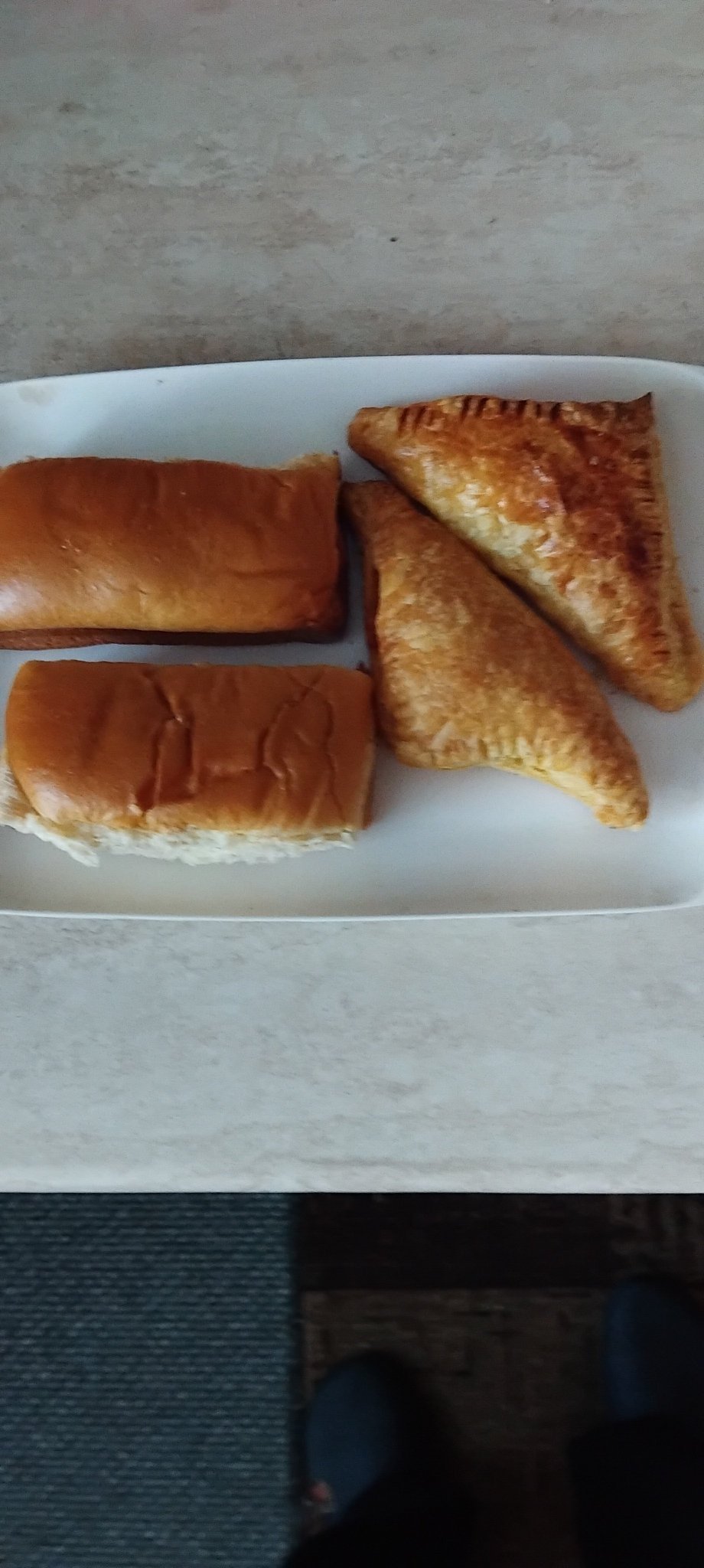 За утре-бутер банички,кифлички с крем Ванилия и извън кадър ябълка и десертче Брауни.