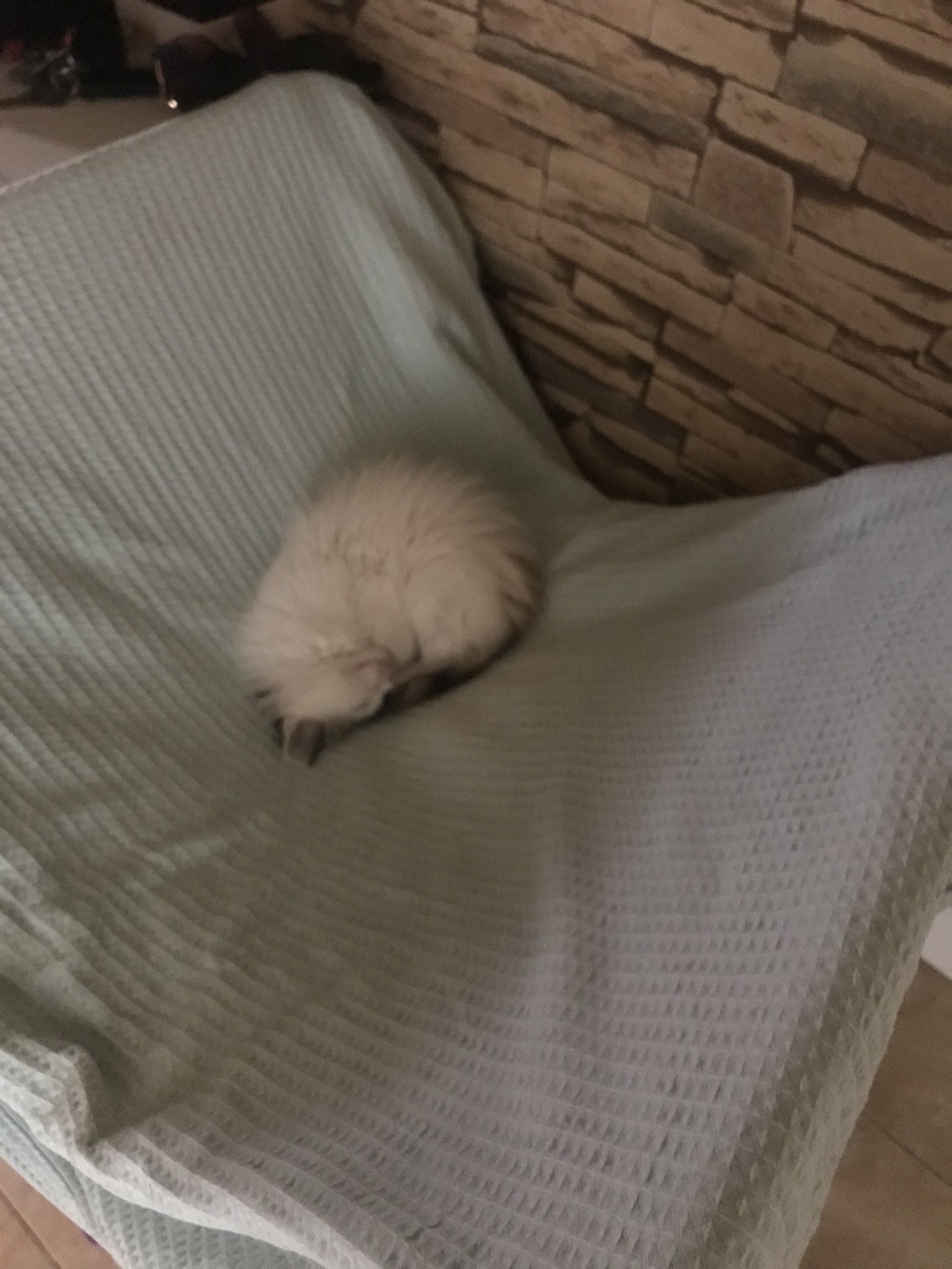 Това ми е сушилката с пране. Бях метнала едно изпрано покривало, сгънато. Как се е сетила да се качи там да спи, не знам. 🤣