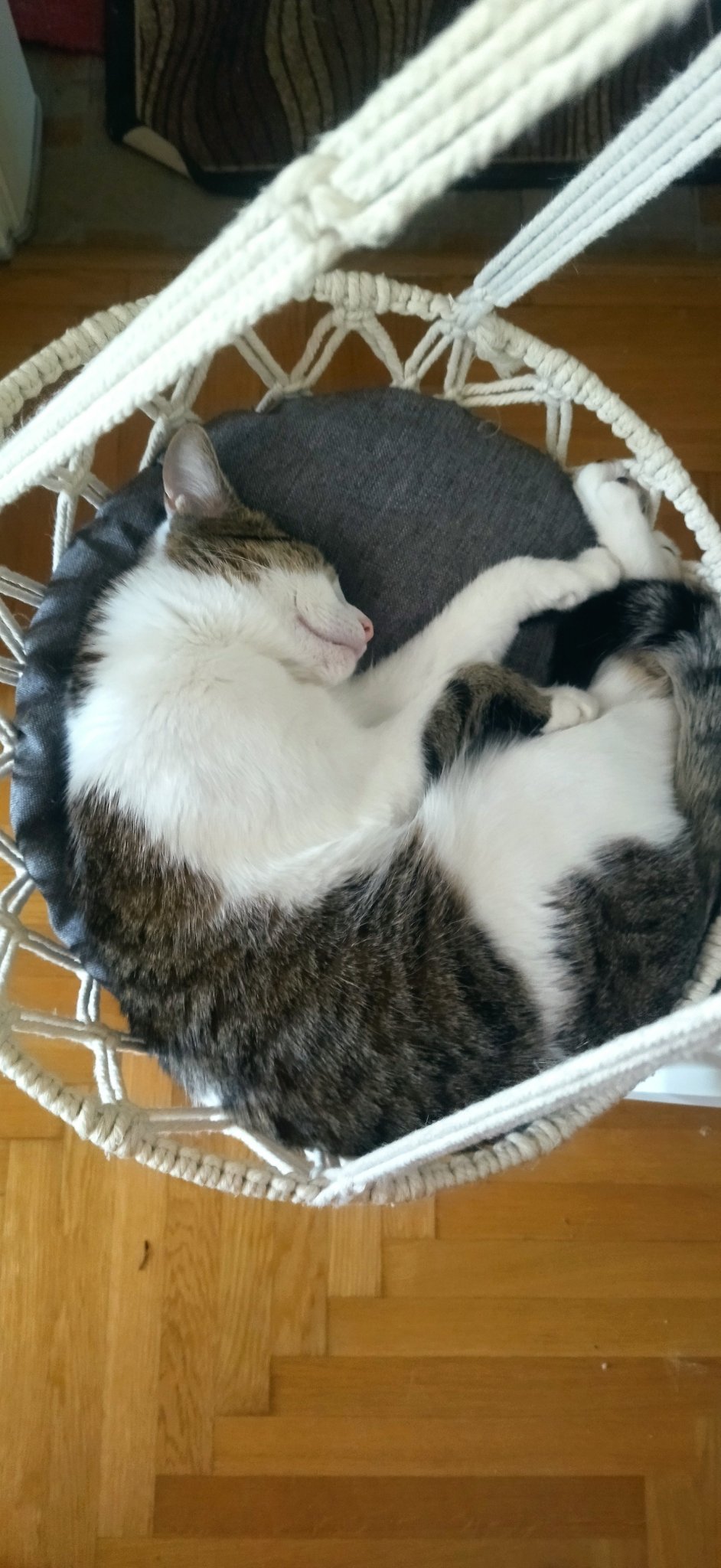 Нашата Оливия си уважава всички легълца и особено й харесва хамака. Спи си в тях основно, макар че и при нас се гушка, най-често отгоре ми.