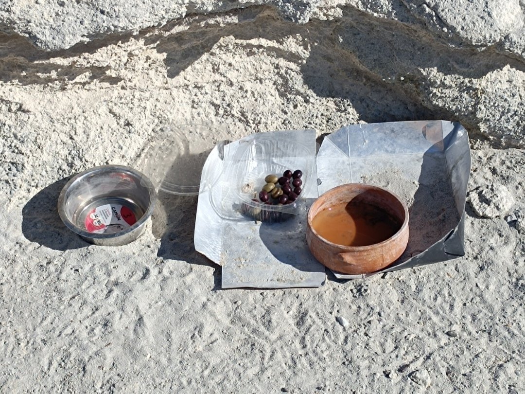 А това е котешка закуска по гръцки Joy За тези, които недовиждат (като мен Simple Smile), паничката е пълна с маслини. 😃