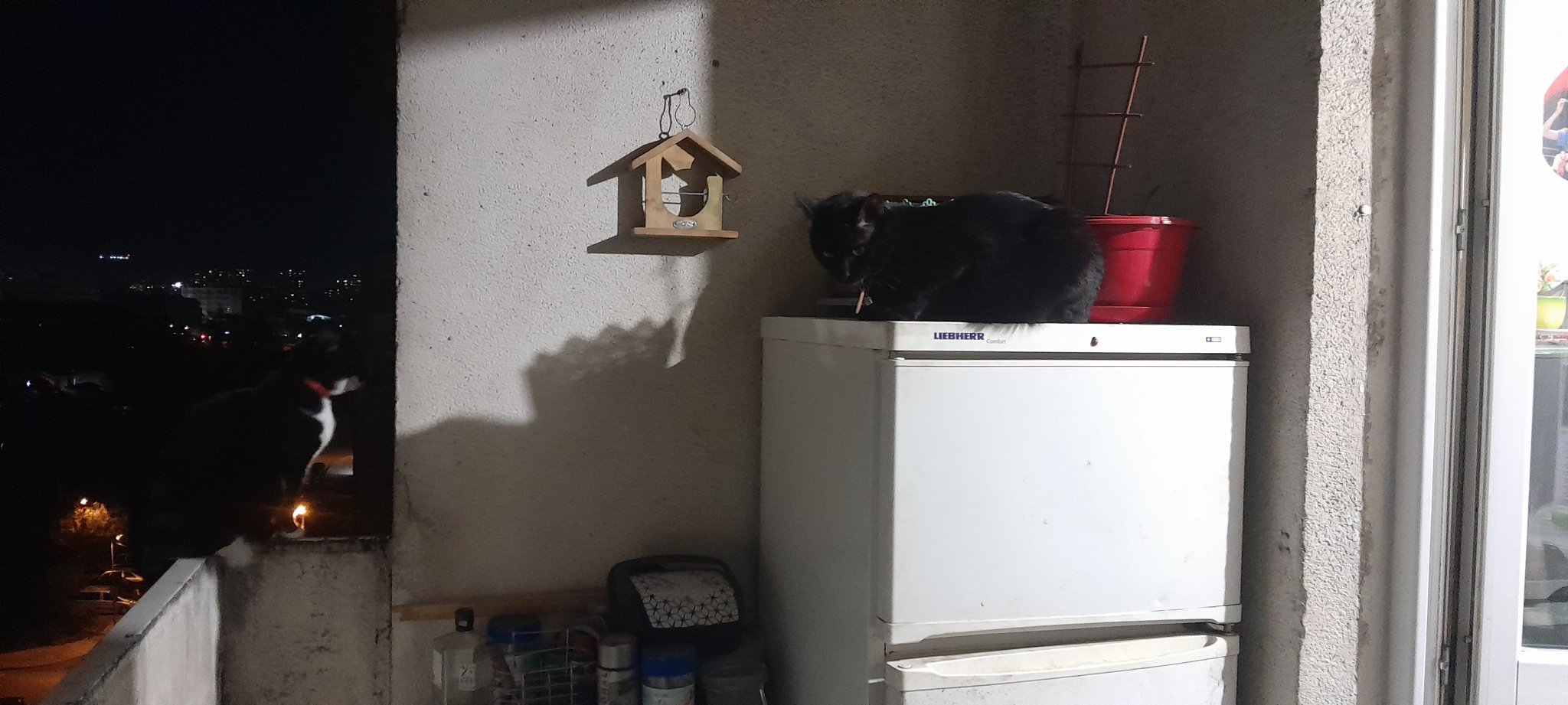 Аз си приготвям вечерята а преди това им отворих балкона. Излязох спокойно да ги проверя, върнах се за телефона и ги снимах. Като казах Влизай! и се прибраха.