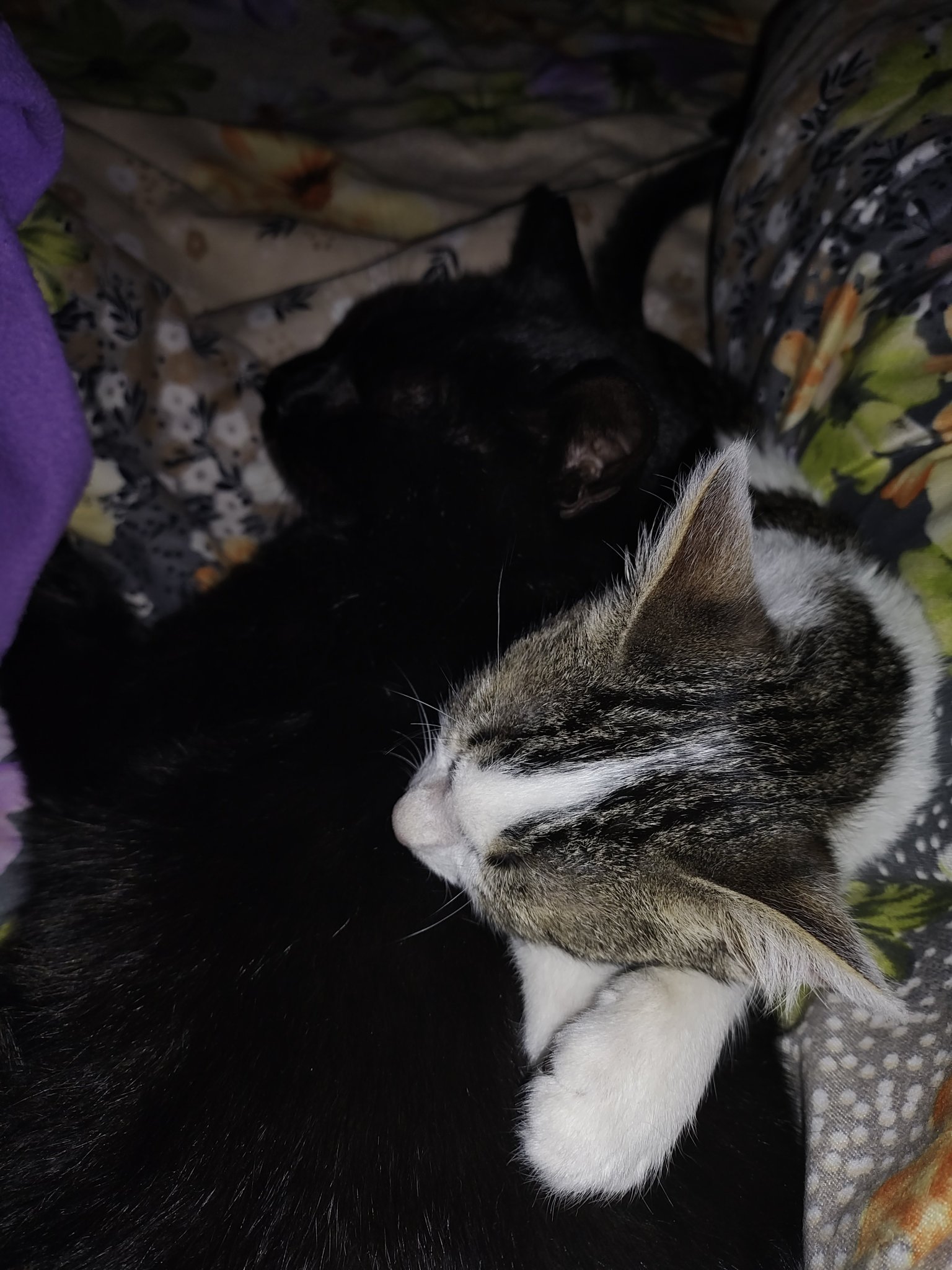 Иначе е гушлив, сам идва , ляга в нас ( на гърдите ми) и се гали в носовете ни или "целува" с облизване лицата ни. Като порасне и се кротне, ще стане още по- голям сладур. За сега бели прави, като цяло дребни, най голямата е, че прегризал слушалките на му ми. Не знам какво толкова им харесват. И Памук редовен ги гризе.