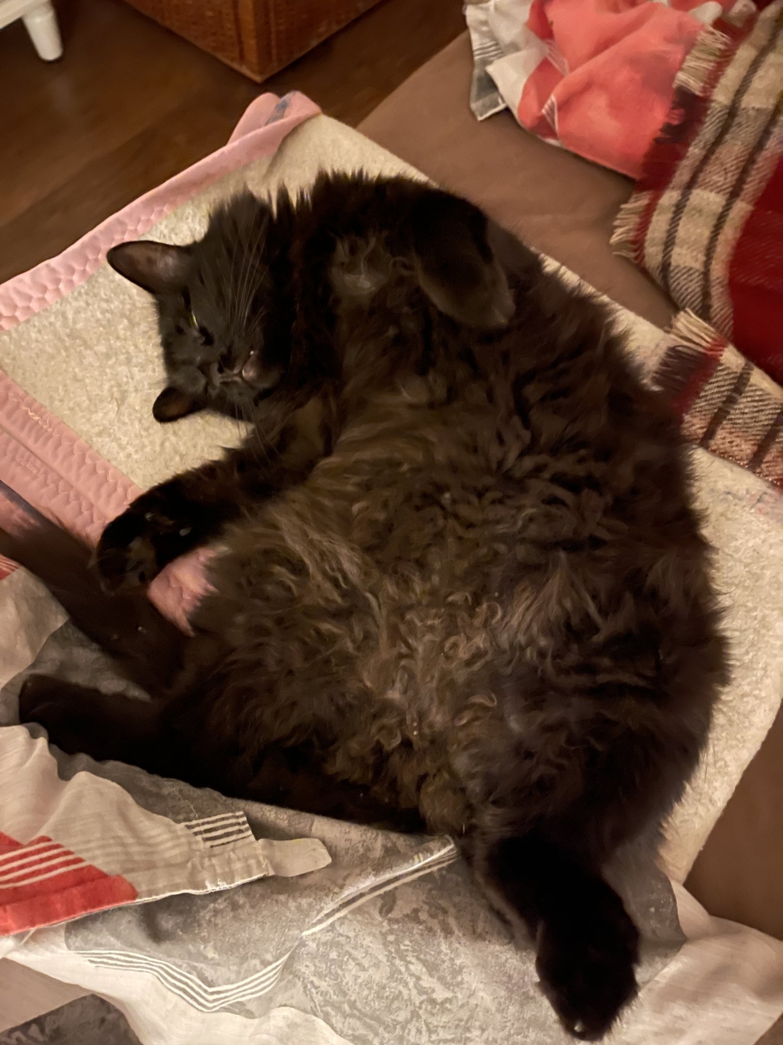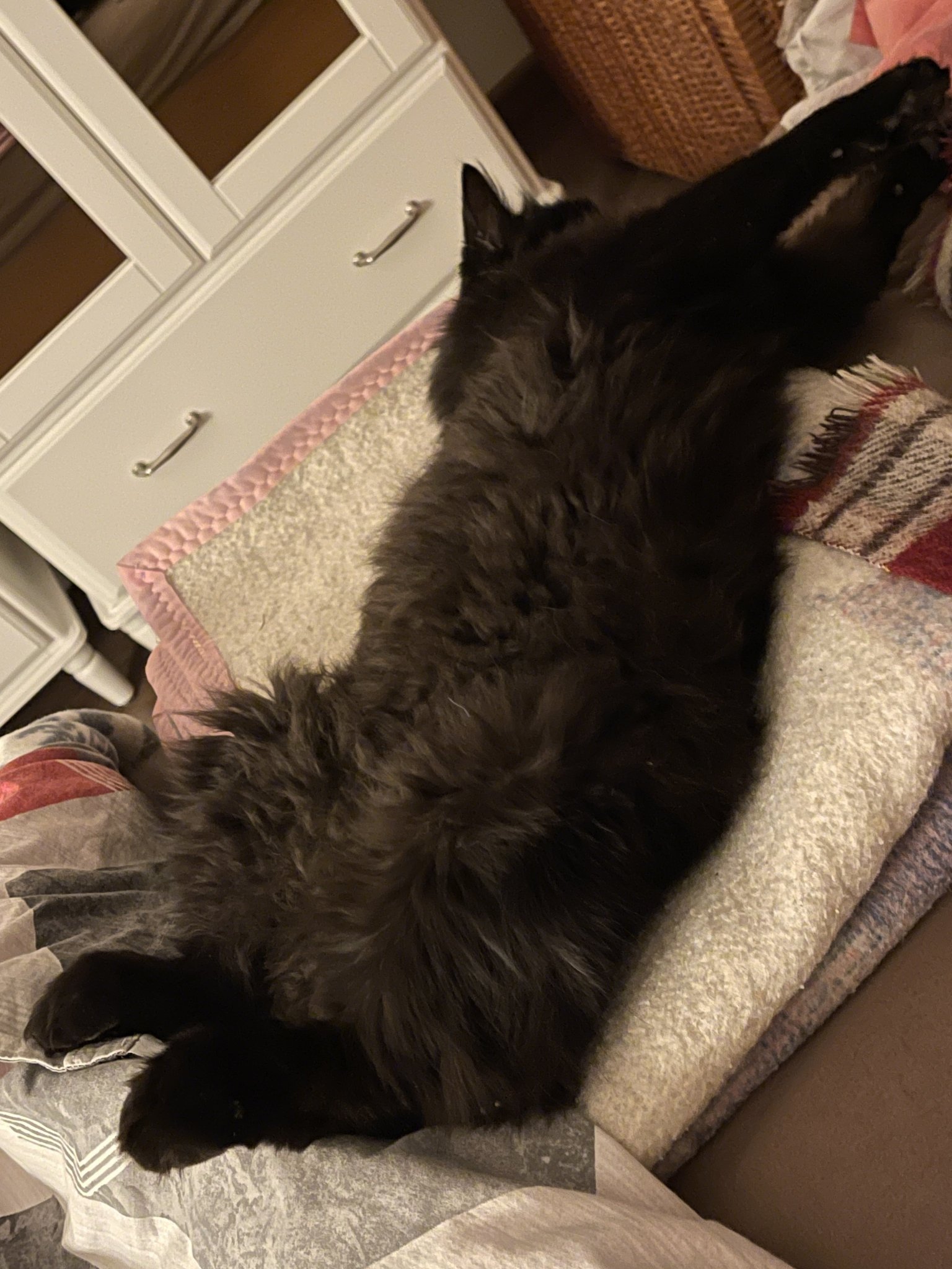 Да,много е пораснал,разтяга се и мисля,че е около 50 см в разтегнато положение. Много интересна порода😁дълъг и слаб,и в същото време лъскав и мускулест.Правя сравнение с котката на баща ми,която е женска,кастрирана и много по-едра,с нормална дължина.Този разбойник е дългуч!