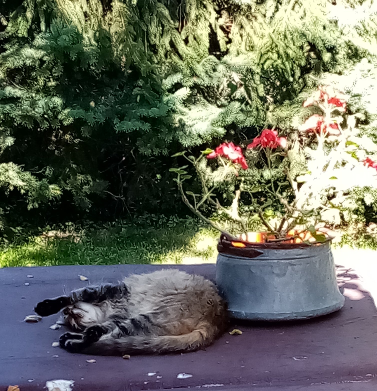 Иначе и Слънчи позаглади косъма, но вече си усеща годинките и хбн и много се пази - не ходи надалече, не си хаби нервите с разни котараци, и общо взето си пази силичките, да може като му кефне да удари един спринт нагоре по дървото и да си припомни какъв атлет е бил на младини... Вече спада и той към графа сениор - 7+ години.