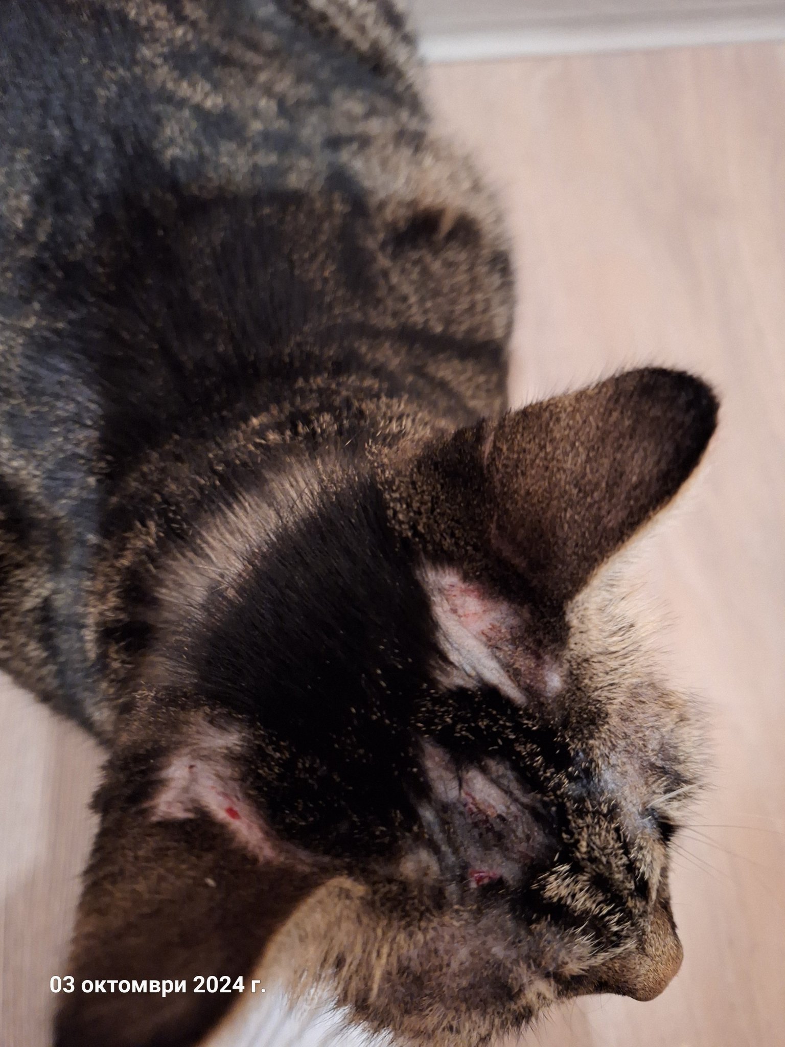 Диагнозата е алергия, котката е на лечебна храна, от 1 месец е на хапчета - против алергия, и НИКАКЪВ резултат! Онзи ден направих отвара от смрадлика , налагахме я, и имаше видимо облекчение, но тя се разчесва и резултатът е краткотраен,,.. лекарите казват, че терапията е поддържаща, нямало лечение на алергията,..