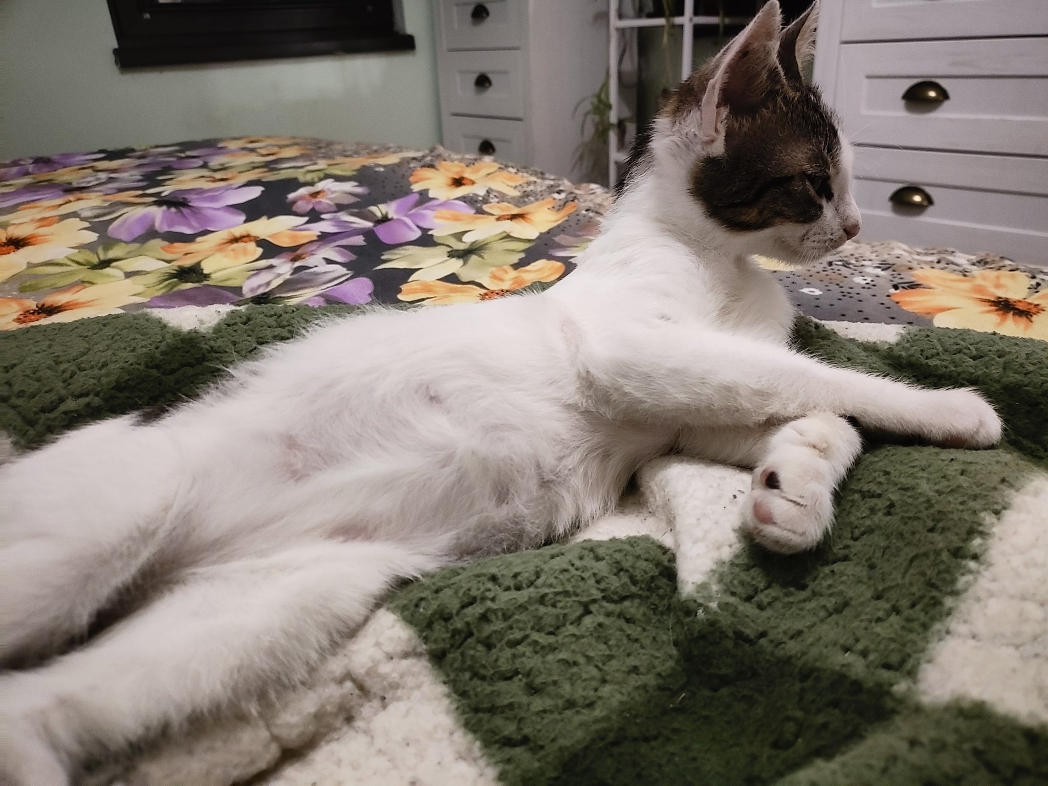 Утре става месец откакто наш Лео е у дома. Не мога да преценя дали е пораснал, но е заоблил тумбака и е мекичък, а не кокалест на пипане. Гальовен, мъркащ, игрив, малко нахален когато му се играе. Типично дете.