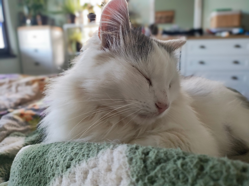 За десерт - един прекрасен Памук. Лятото изглежда слаб и проскубан, но застудее ли, става разкошен пух! Толкова е кротък, че на възел мога да го вържа 😂