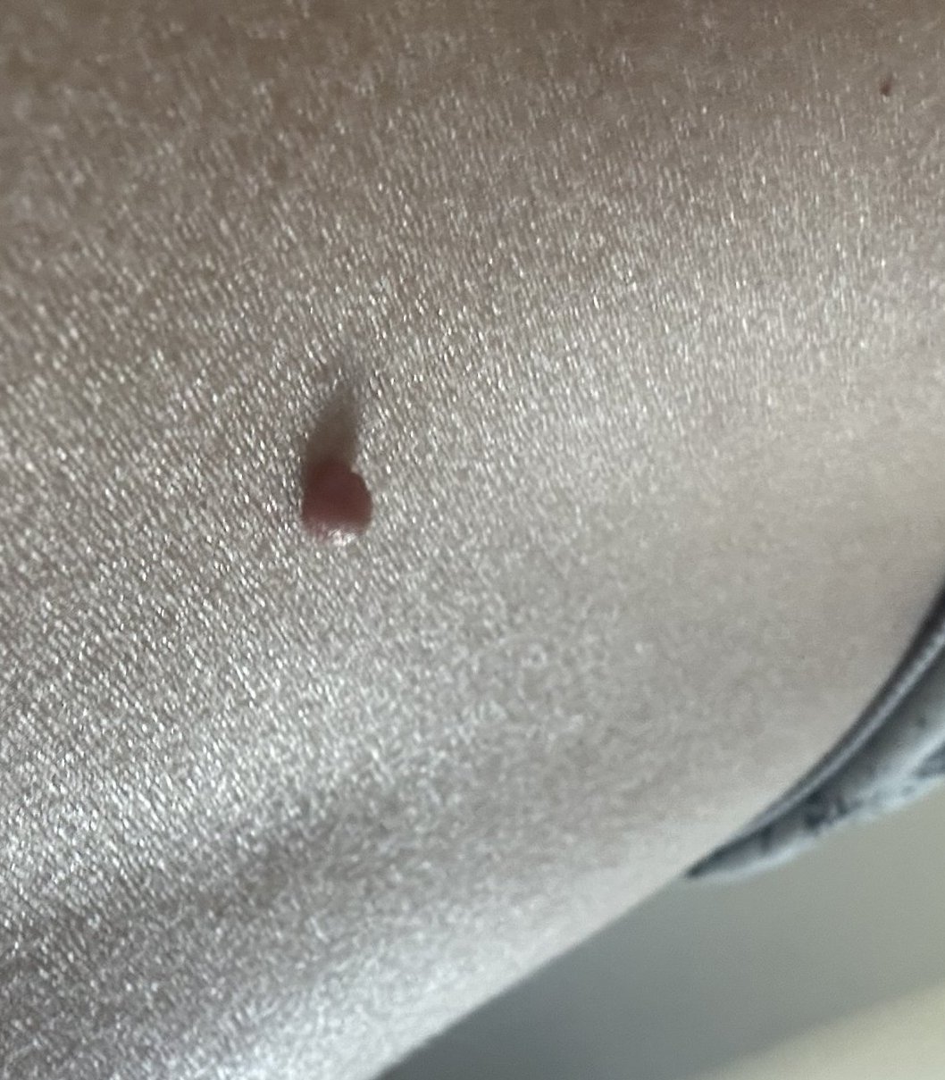 На мен по скоро ми прилича на ангиом, едно като балонче пълно с кръв. Ако е такова, не е нещо лошо.