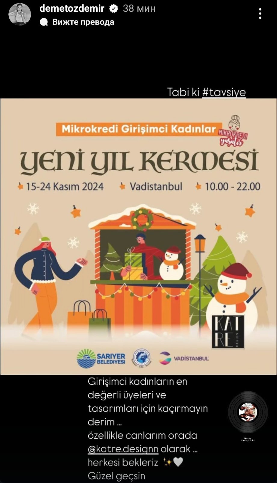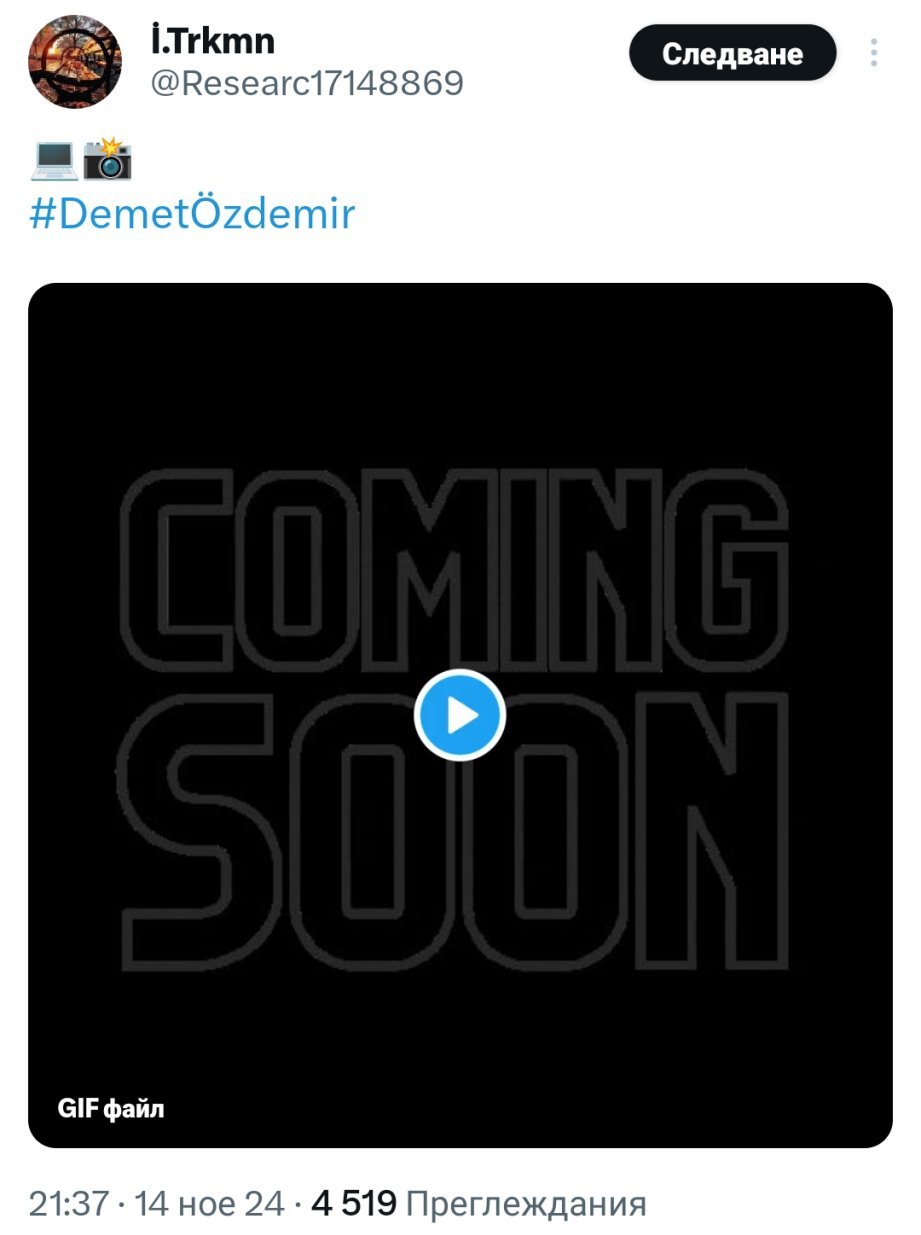 "Турската актриса Демет Йоздемир ще бъде наградена по време на 8-то издание на наградите Distinctive International Arab Festivals - DIAFA 2024 на 26 и 27 ноември, на живо от Plaza Terrace на Jumeirah Emirates Towers @ jumeirahemiratestowers, с лице към емблематичния паметник на Дубай - Музея на бъдещето."