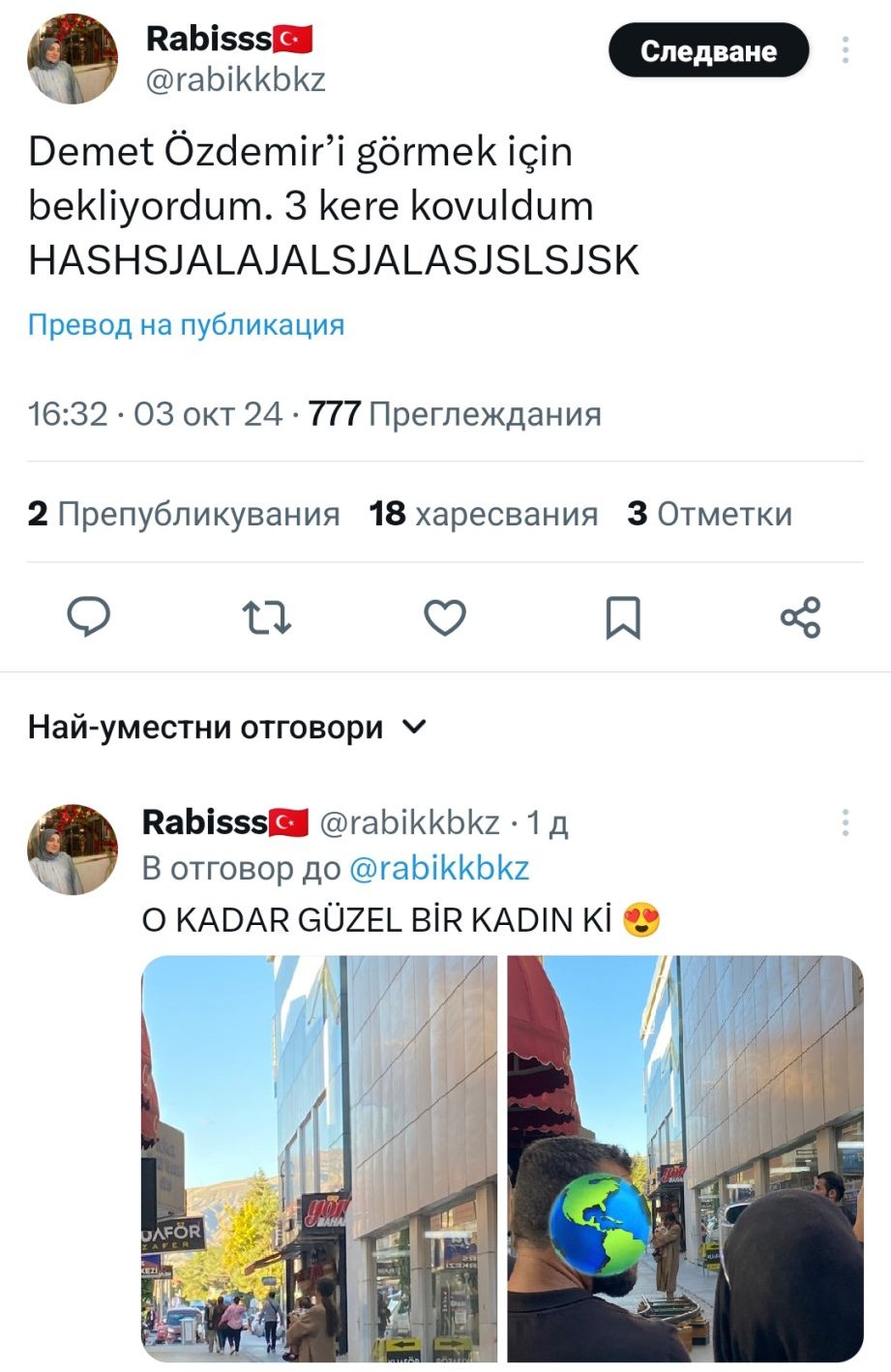 "Връщаме се към юли 2018 г. и си спомняме снимките, които направихме с Демет Йоздемир."
