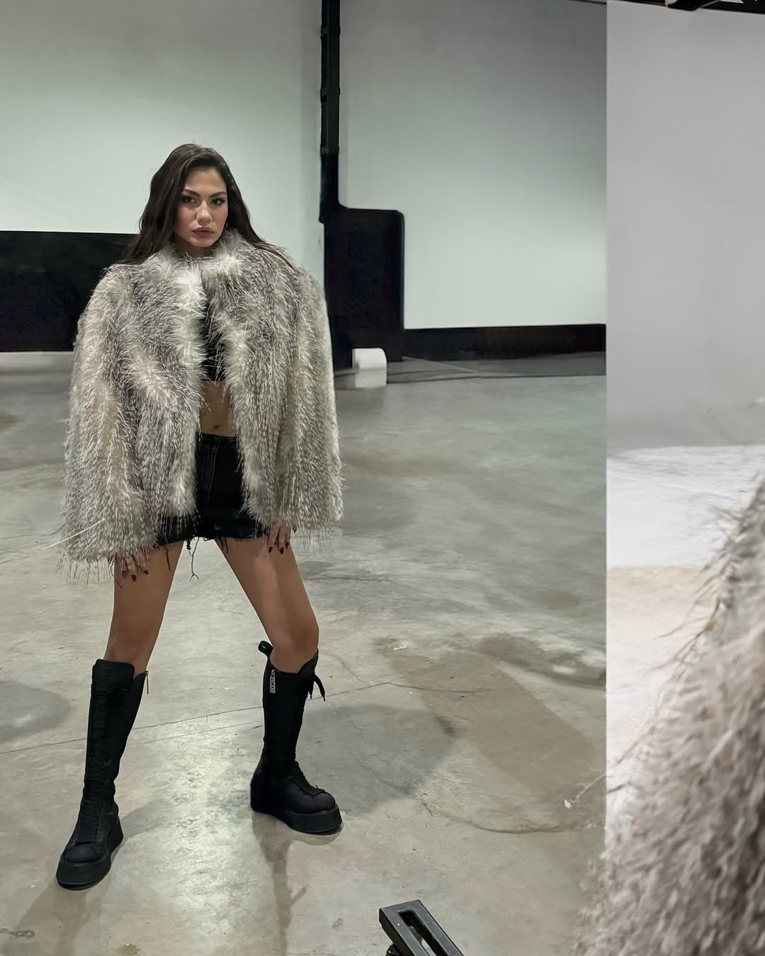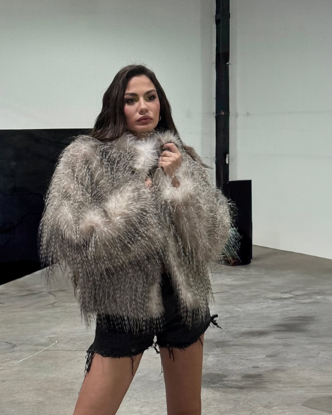 Тези снимки с палтенцето от Аджеля се появиха, докато снимаха танца с Онур Алп. Не знам дали са само за рекламата на марката или ще видим дрешката и като реквизит в някоя композиция Kissing Smiling Eyes Струва ми се, че по-скоро - не.
