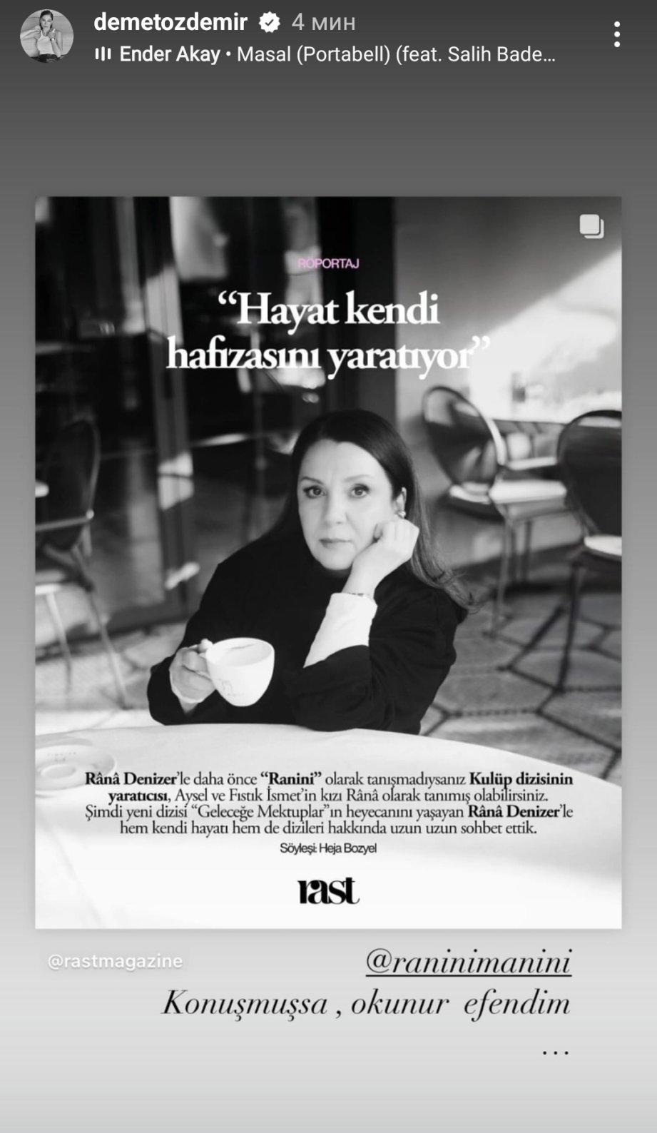 Най-гледаното съдържание по израелския канал Вива за 2024 г. е "Казвам се Фара". Демет споделя детайлно интервю на Рана Денизер, по-позната като Ранини >>> https://www.rastmagazine.com/yazilar/rana-denizer-hayat-kendi-ha … elecege-mektuplar