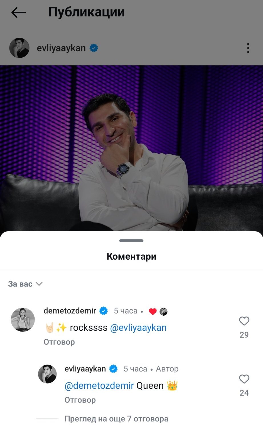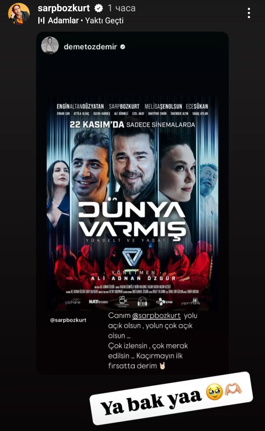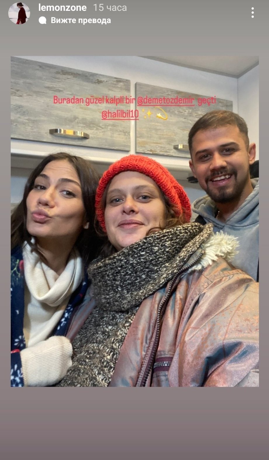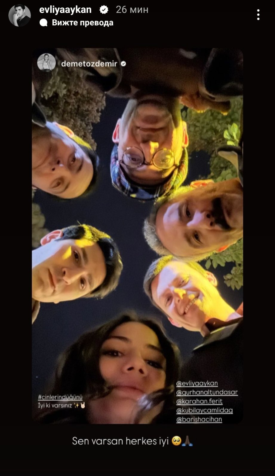 С Евлия явно много се разбират. На общата снимка е написал на Демет - Стига да си наоколо, всички са добре. А и тя е харесала интервюто му Sunglasses