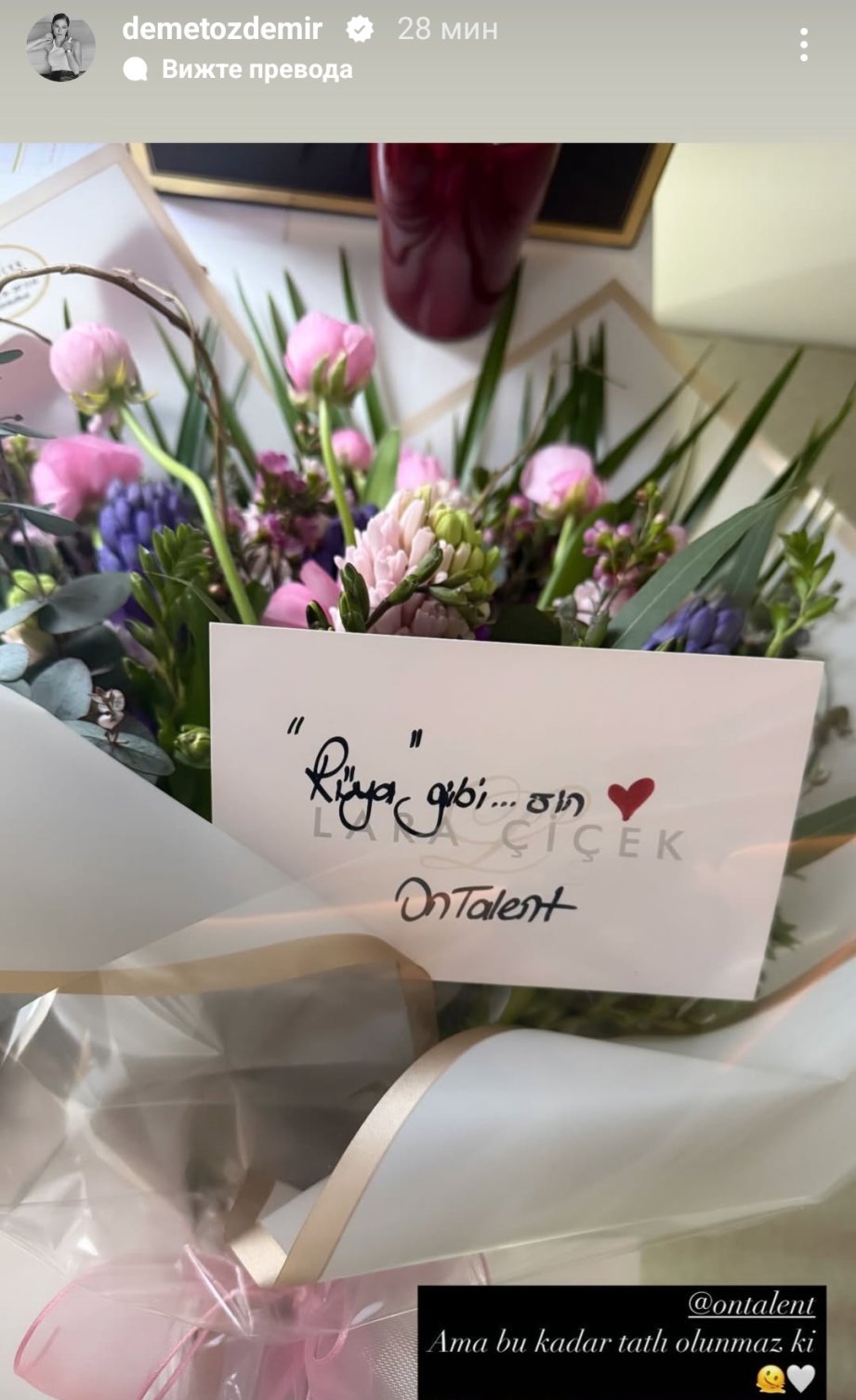 Познаваме си хората. Ето го и дългоочакваното букетче Flowers Bouquet Така като гледам и това в караваната на Чаатай е със същото лъскаво кантче и панделка (само цветът е друг) Kissing Heart Според мен днес точно ще снимат сватбата. Щом Нихал ще гримира Демет, трябва да е по-специална сцената. Виждаме, че и костюм е приготвен.