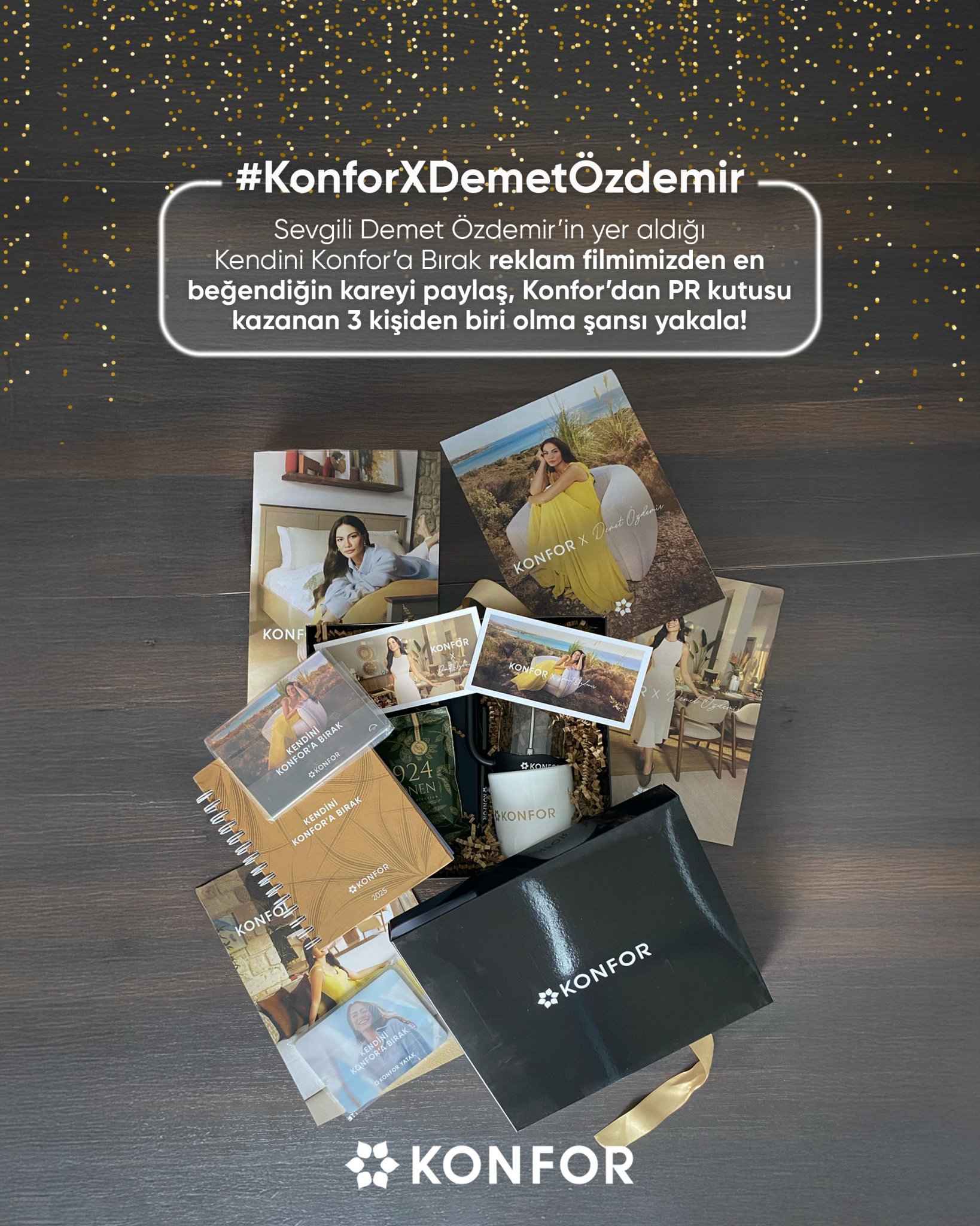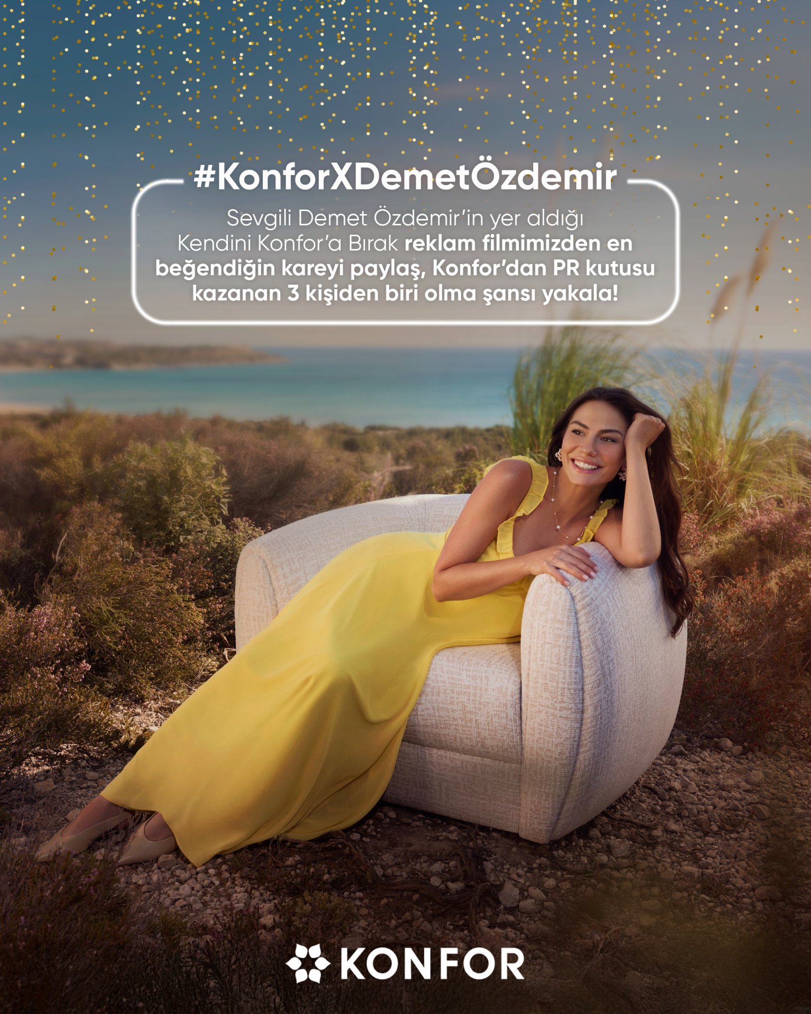 Споделете своя любим кадър от нашата #KendiniKonforaBırak реклама с участието на нашата скъпа Демет Йоздемир и получете шанс да бъдете един от 3-мата души, които ще спечелят PR кутия от Konfor! 🥳 Това, което трябва да направите е да споделите изображението, като цитирате този туит с етикет #KonforXDemetÖzdemir и да последвате нашия акаунт @konforidentity. Успех! 💛