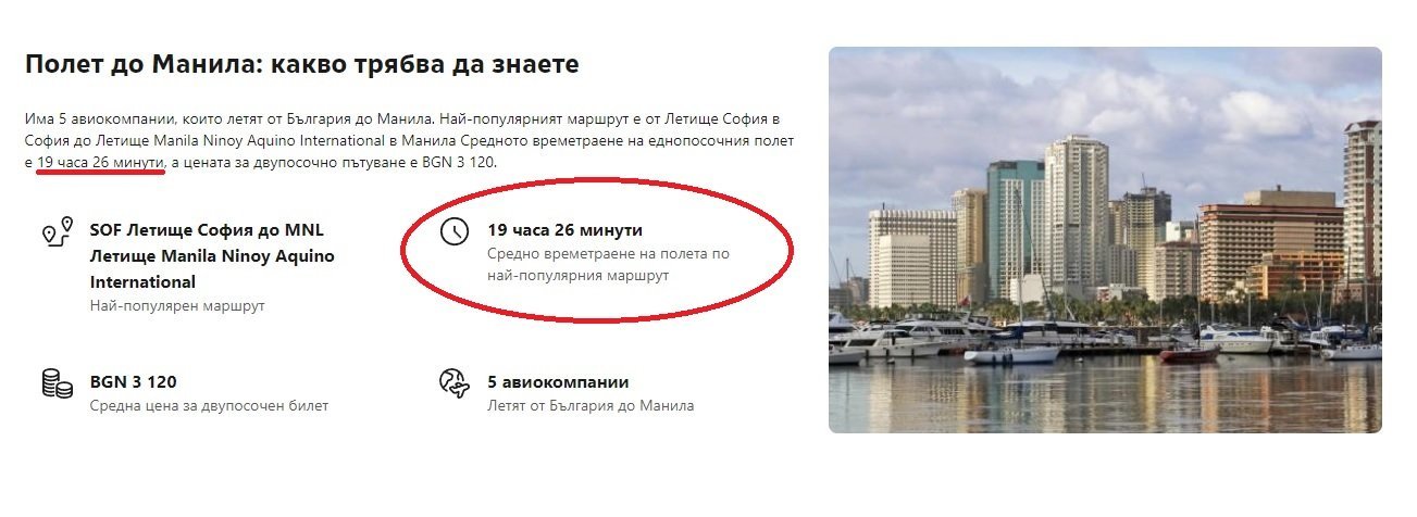 Та, с коя авиокомпания/и има полети София - Манила за под 5 часа?