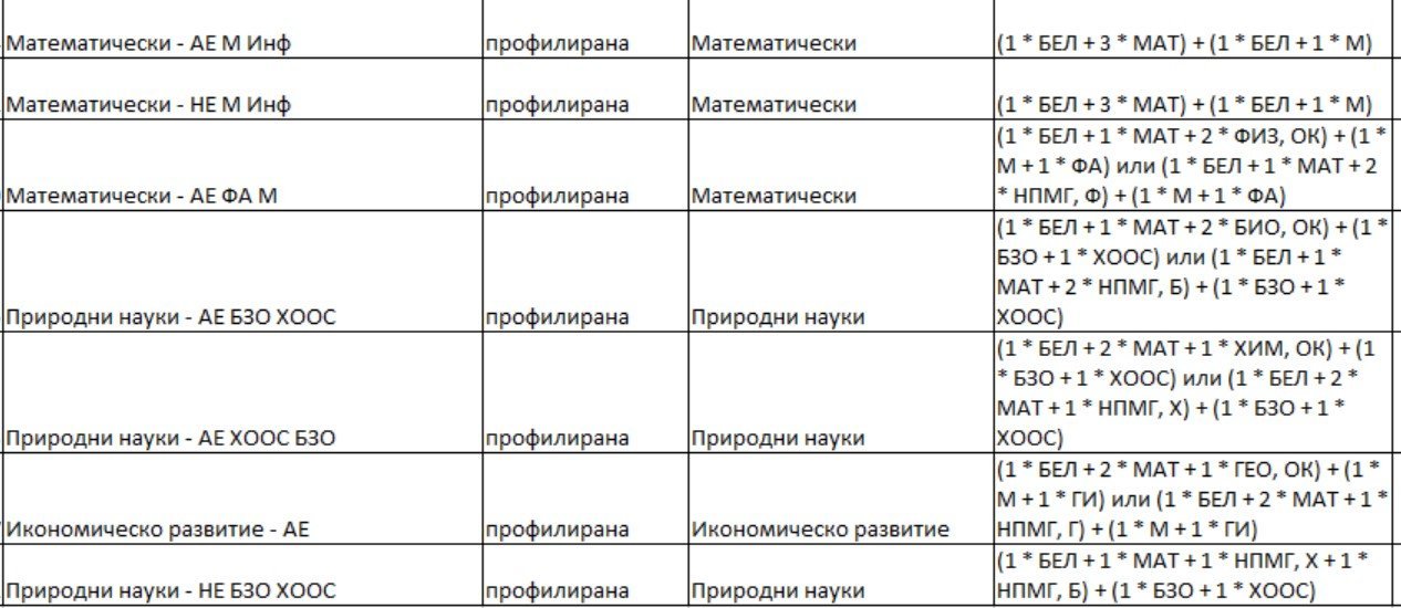 И това горе беше произволен пример. Моето дете имаше висок резултат по математика, висок по биология и влизаше във всички паралелки на НПМГ, като балът за хибридната му беше най-нисък, след това беше биологията, след това химията, а най-висок бал имаше за математическите паралелки.