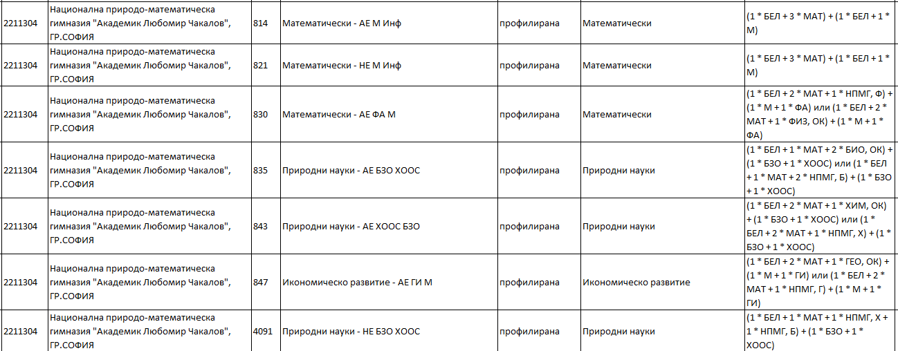 А паралелката химия+биология +немски език ползват само състезанието и не може да се ползва по-високия от двата резултата състезание<=>олимпиада.