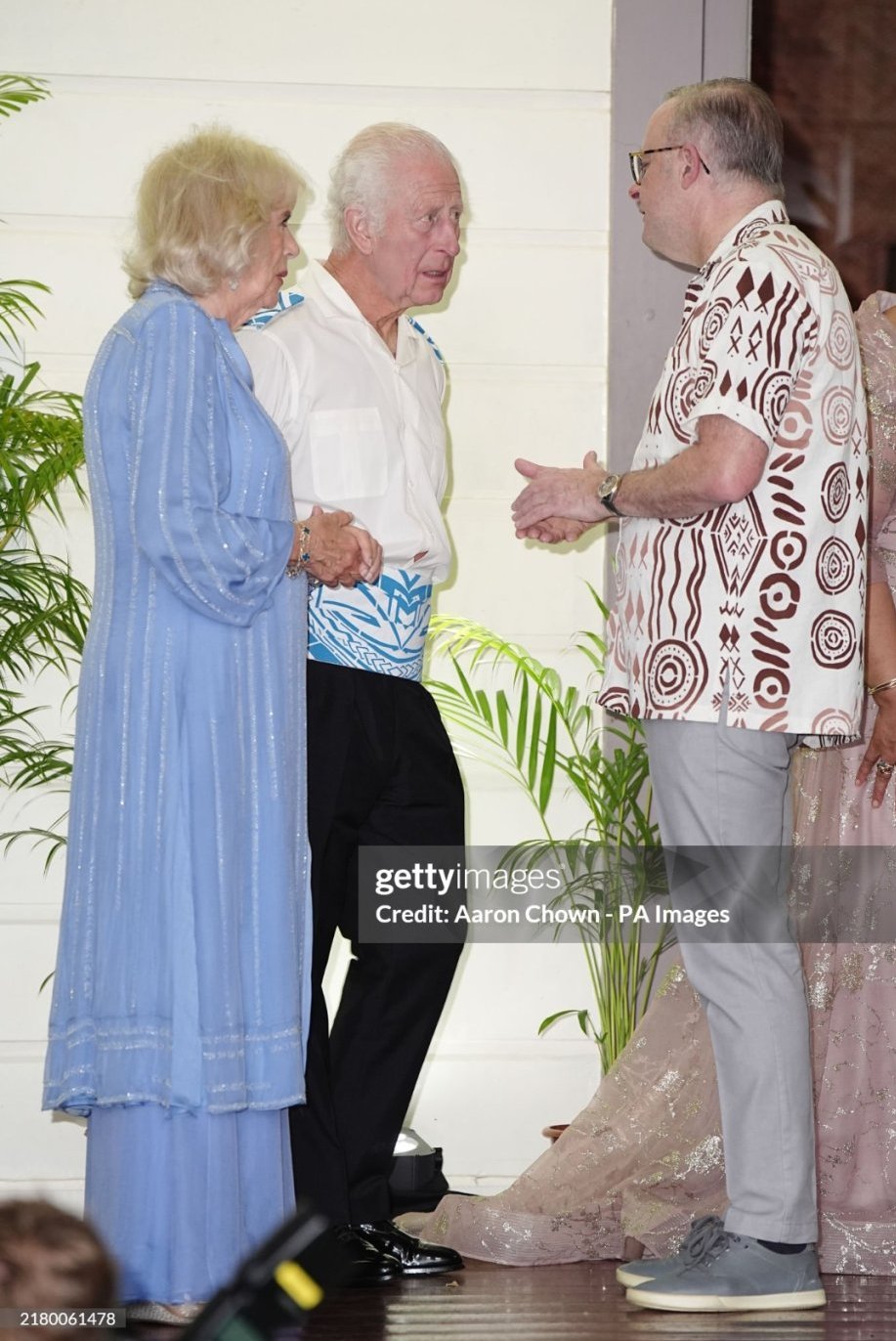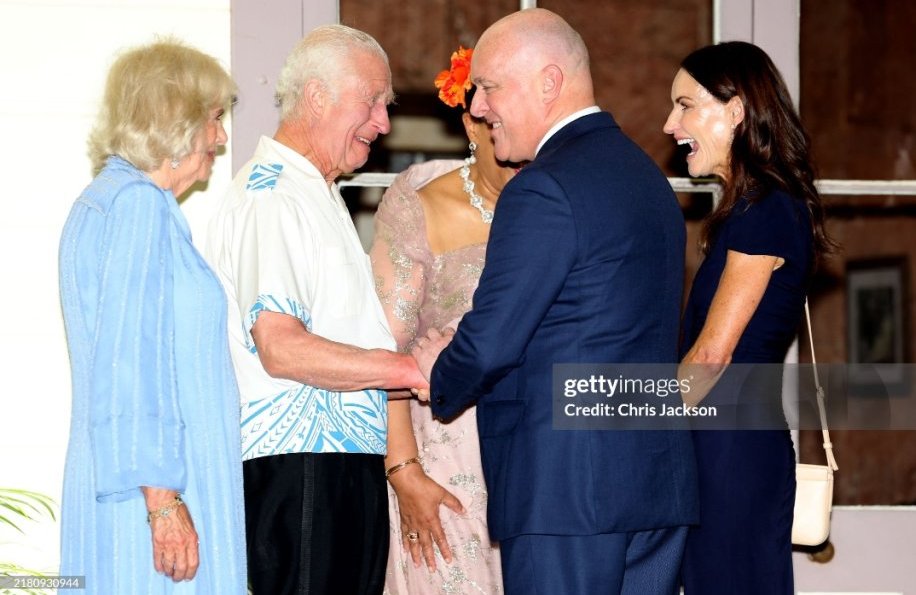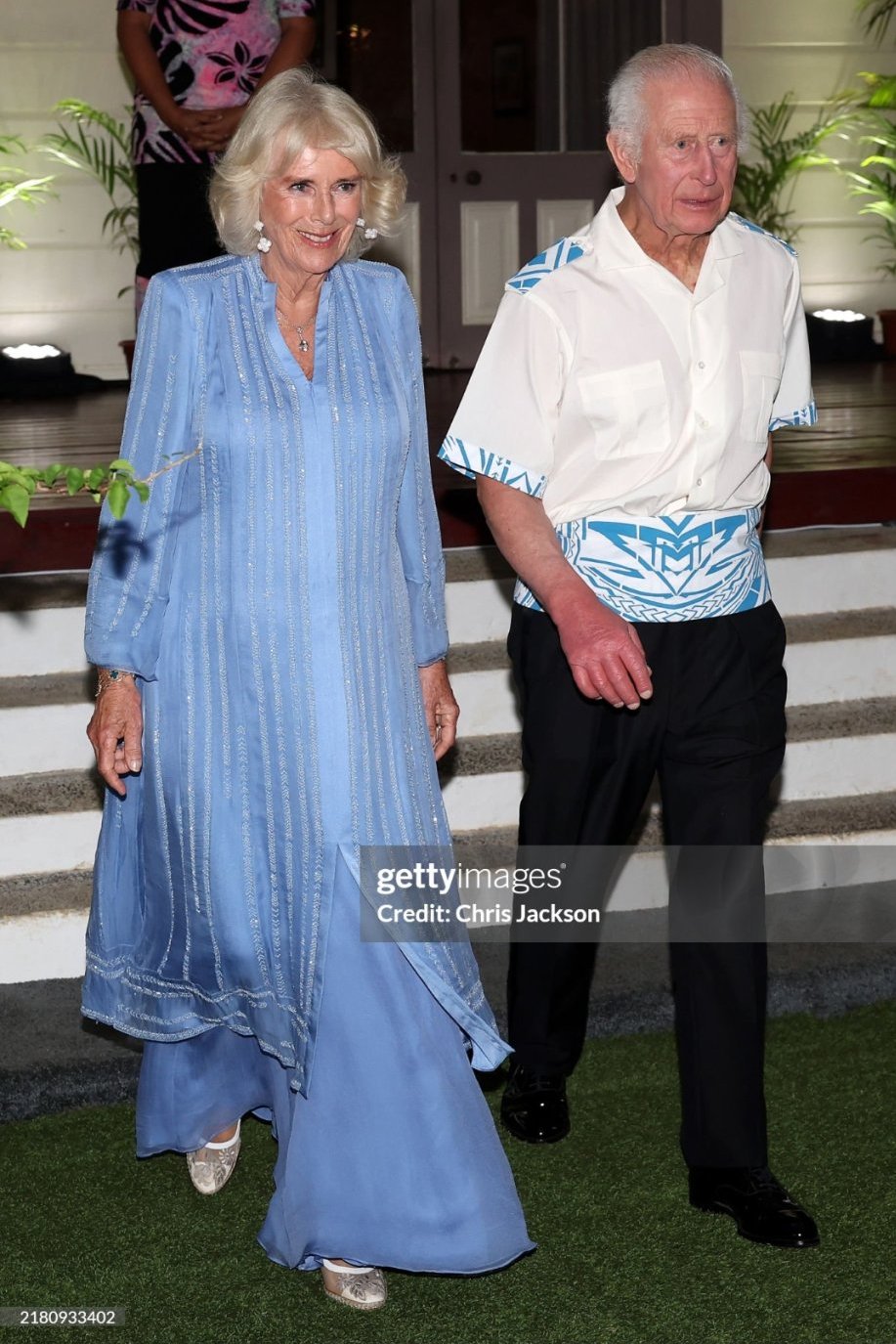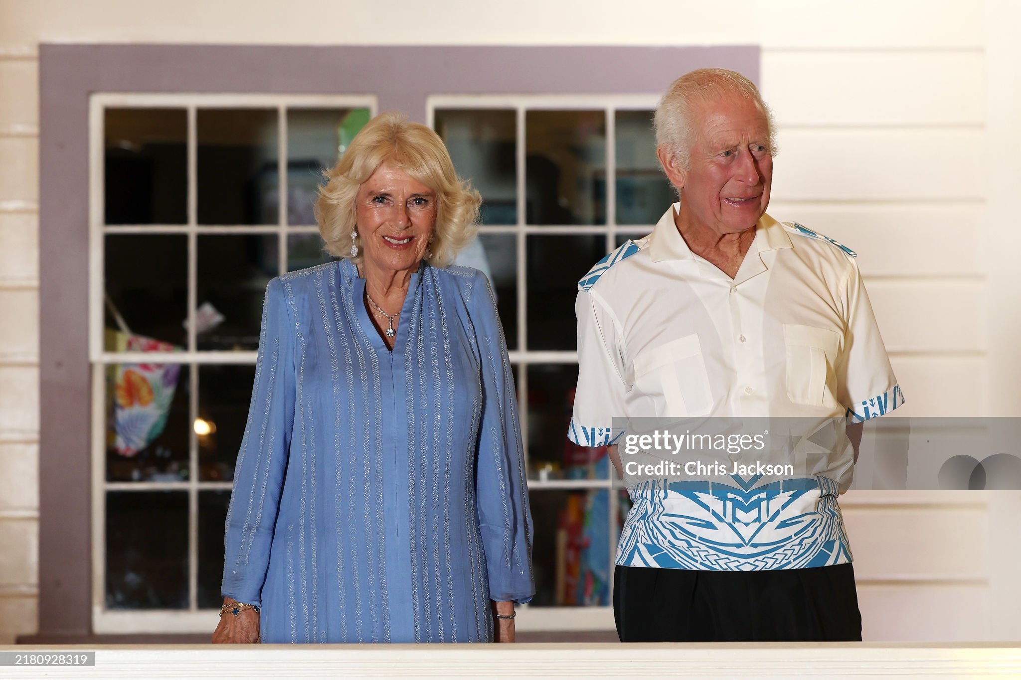 Кралят и кралицата присъстват на официалната вечеря и прием за правителствените ръководители и делегации на Британската общност в музея Робърт Луис Стивънсън в Апия, Самоа: