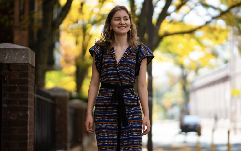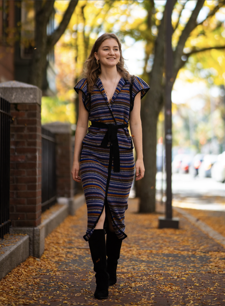 Интересен и различен тоалет, сякаш е шарена черга, но тя ми харесва в него.