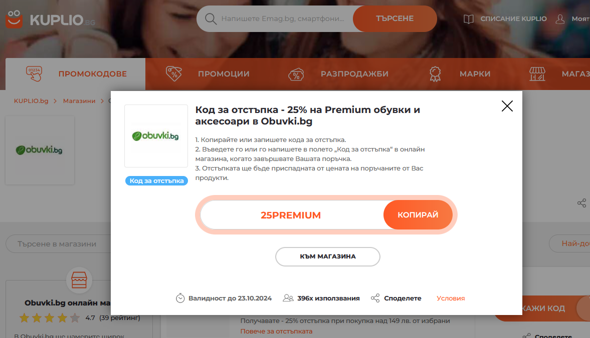 Търся код за obuvki.bg или modivo.