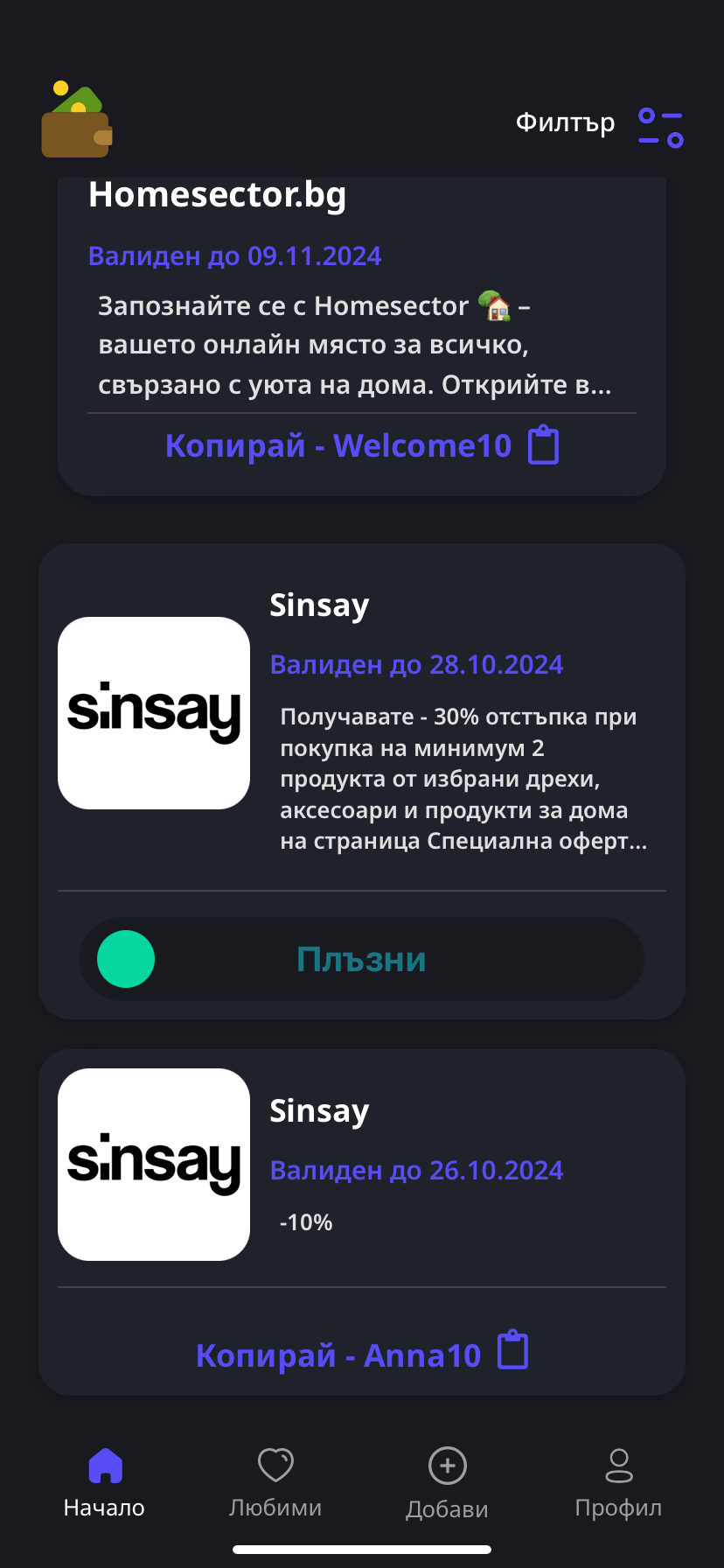Тук преди време бяха качили това приложение- “ПромоКодове” се казва. Можете да го видите и е доста полезно.