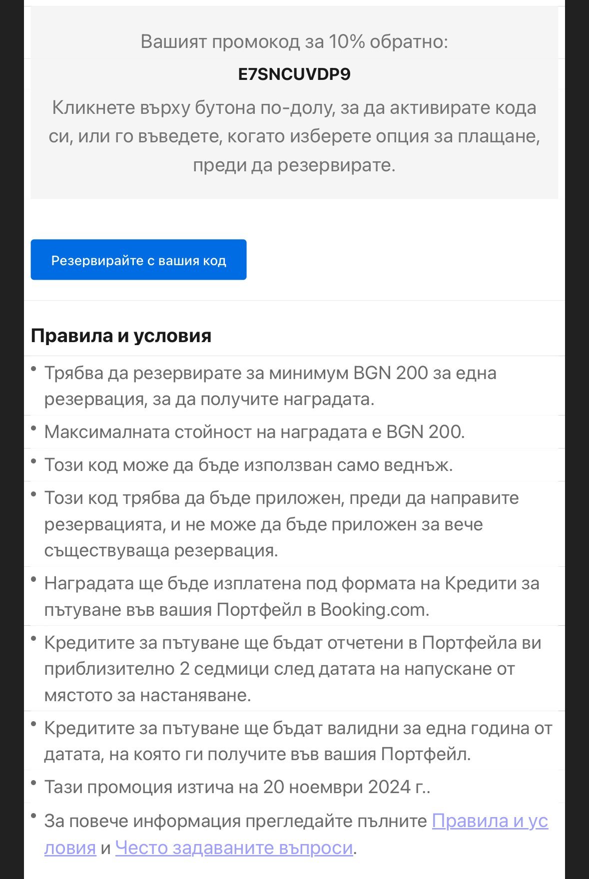 код за букинг, валиден до 20.11