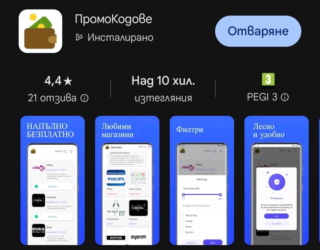 Аз ползвам приложението ПромоКодове