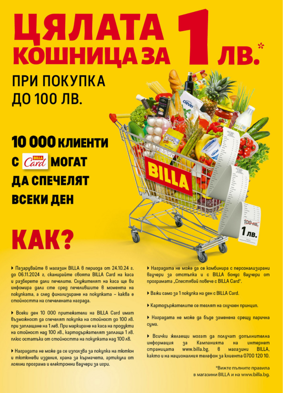 Пазаруваш, маркираш билла карта и ти казват дали печелиш или не. Ако печелиш, плащаш 1 лв. за покупката.