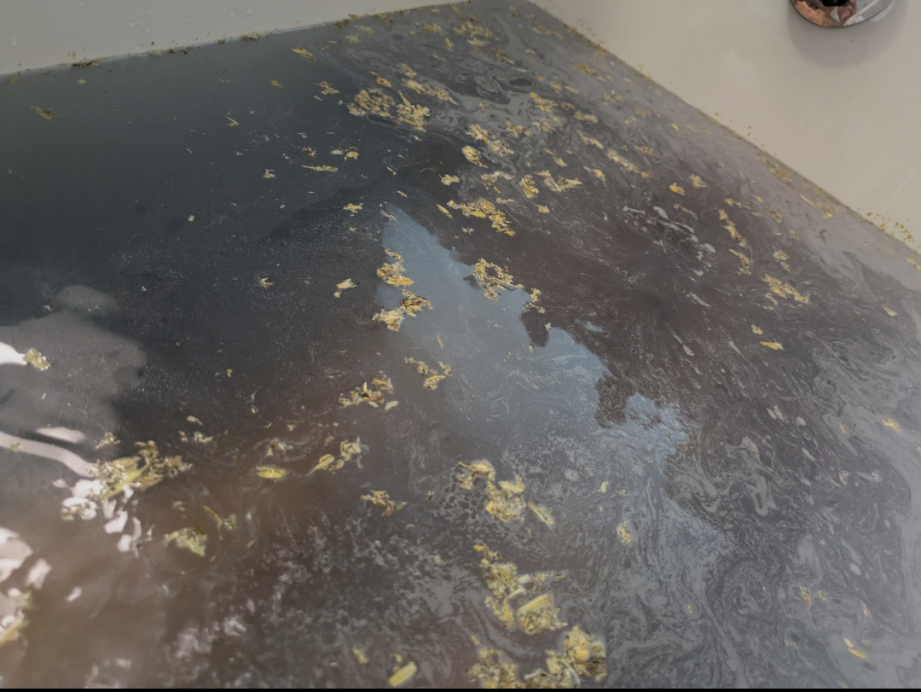 Нали съм болна и решавам да се лекувам с гореща вана, съответно набухах соли с лайка, соли с ментол и розмарин и една бомбичка с роза и лавандула за разкош. Та гледайте, докарах го на автентична кална локва: