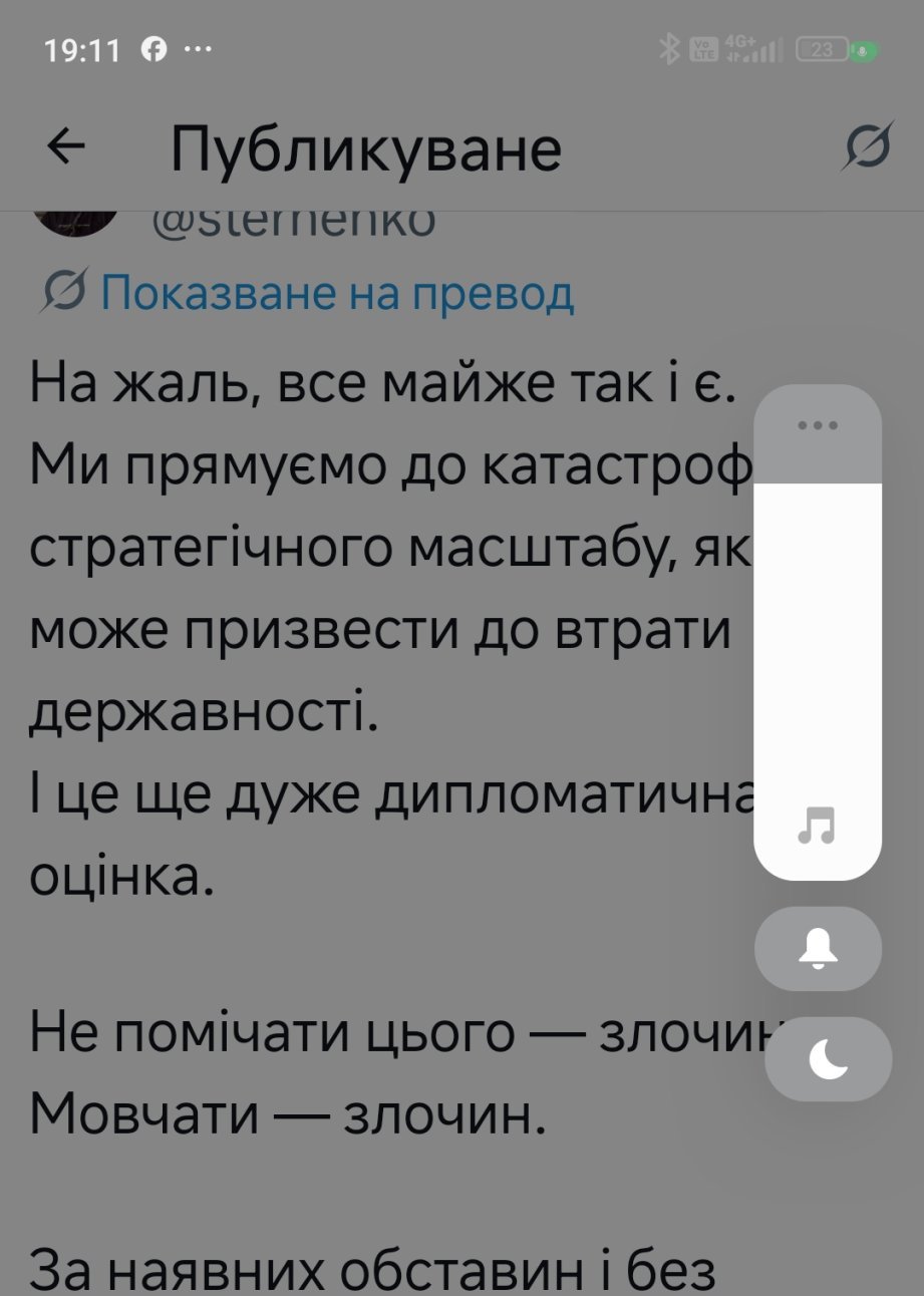 Сега четох Стерненко в Х и подобна публикация от него много ме учудва.  Катастрофа, загуба на държавността, руснаците в Днепър и Запорожие....