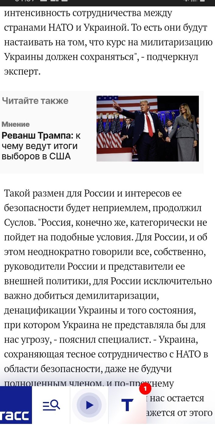Досега запомних 2 неща- Тръмп не иска да дава пари и да подарява оръжие на Украйна. Беше доста рязък със Зеленски и го обиди, наричайки го търговец. И аз мисля, че няма да натиска  Украйна за нищо, просто ще врътне кранчето. Другото е признанието на самите украински ръководители, че без помощта на САЩ войната свършва. Нуждаят се от пари и оръжие. ЕС дава много малко на фона на Америка и само с  помощ  от ЕС нямат шансове да устоят дълго. Всяка война, особено съвременна война, струва много пари. Украйна ги няма. Затова предвиждам край на войната, а не защото Тръмп нещо си щял да каже или поиска или пък да не поиска. Ако постави някакви искания пред Путин, с които руснаците не са съгласни, трябва да продължи на дава пари и оръжие на Украйна. Не мисля, че ще го направи, той обеща на американците да се съсредоточи върху икономиката и миграцията, а това значи да запуши пробойните в бюджета поне в някаква степен.