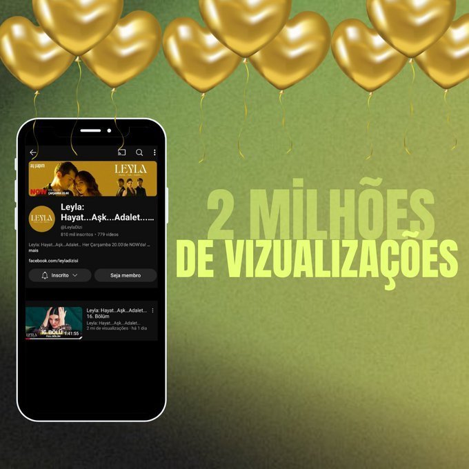 16-ти епизод от сериала #LeylaHayatAşkAdalet достигна 2 милиона гледания от публикуването си в официалния YouTube канал 🥳