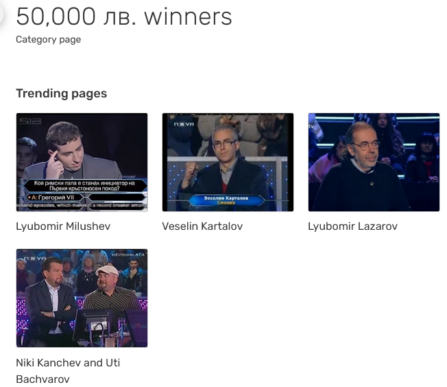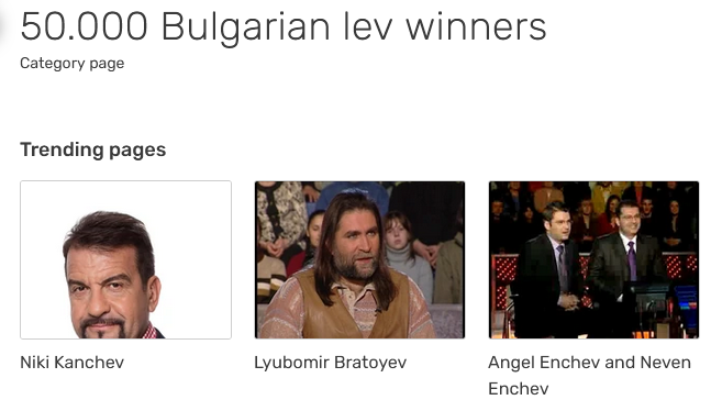 Любомир Братоев, свещеник и собственик на ресторант, беше по мои спомени първият, който спечели 50000 (2006, по Гугъл), но тук не го видях. Запомнила съм го точно като първи, а може и защото е бил колоритен. Някои от другите имена нищо не ми говорят, т.е. тях съм ги забравила. Име Павлов също не видях, но може би списъкът не е съвсем пълен.